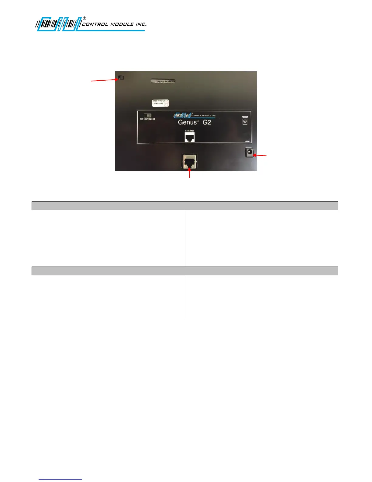 Control Module Genus G2 - Terminal Connections; Ethernet Port Configuration; Power Port Details