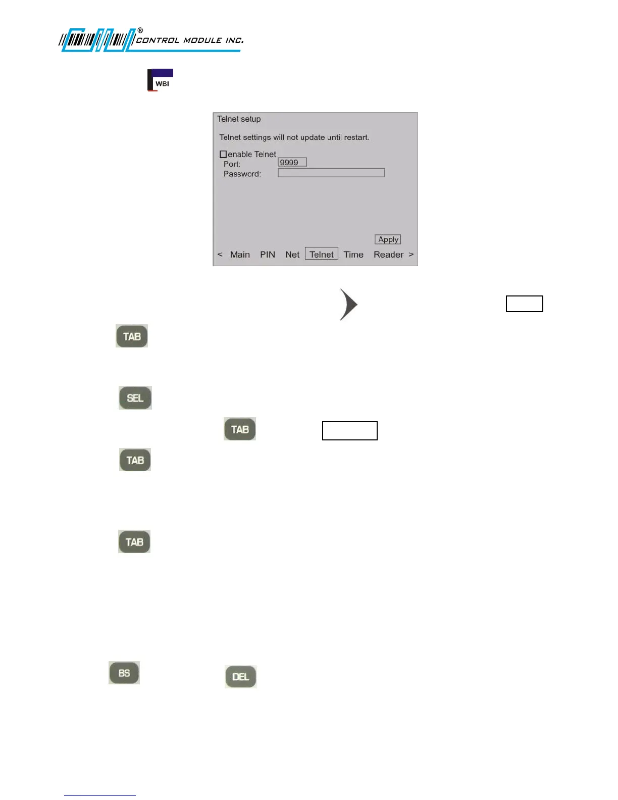 Note: If Telnet is disabled, skips to the button