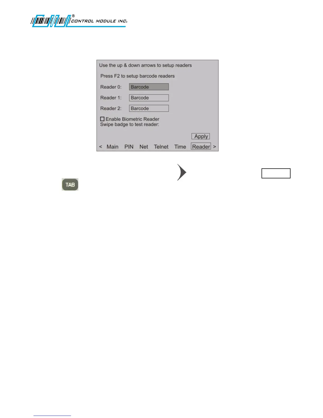 regarding the configuration of an external reader, contact CMI’s