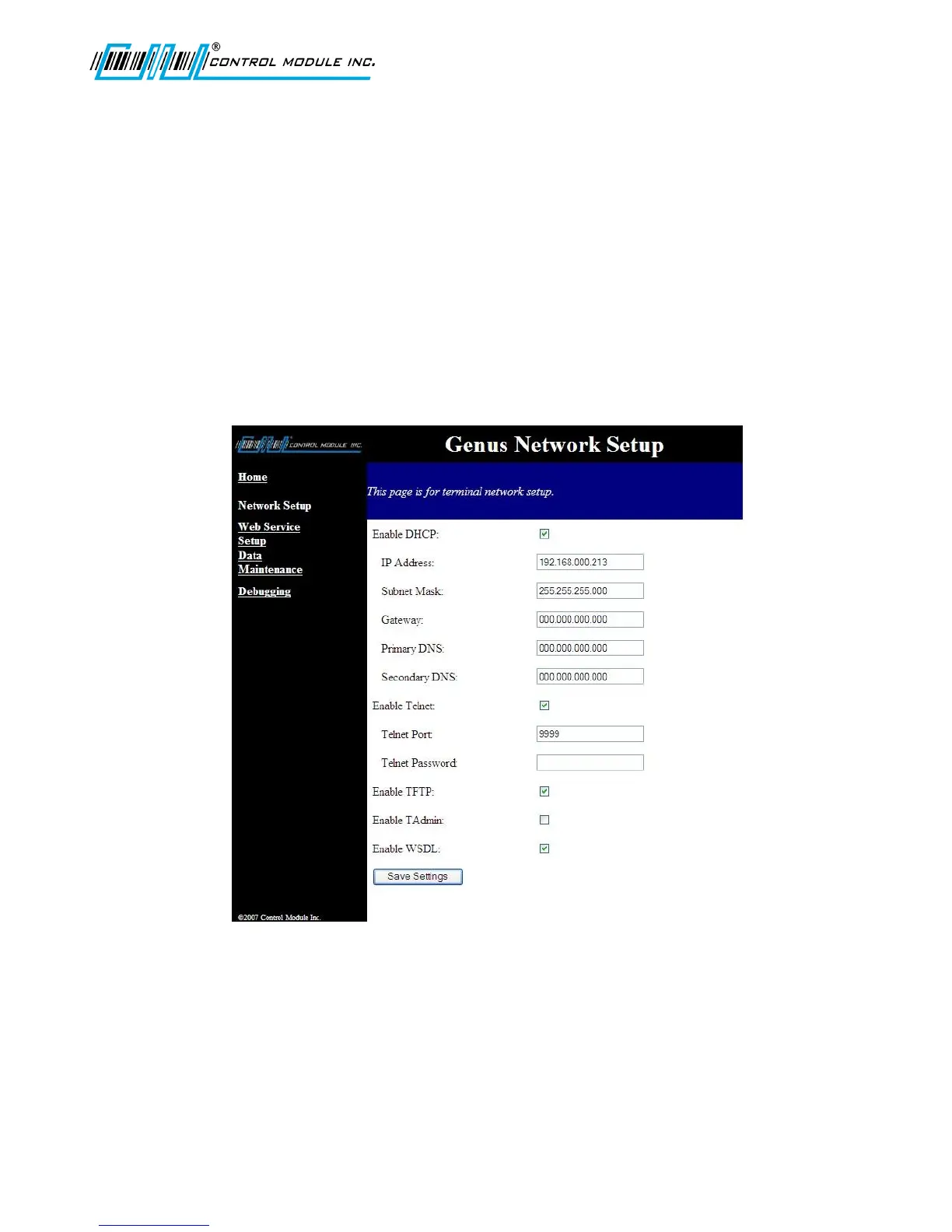 the terminal’s network parameters. All settings on the Network Setup page, except Enable WSDL,