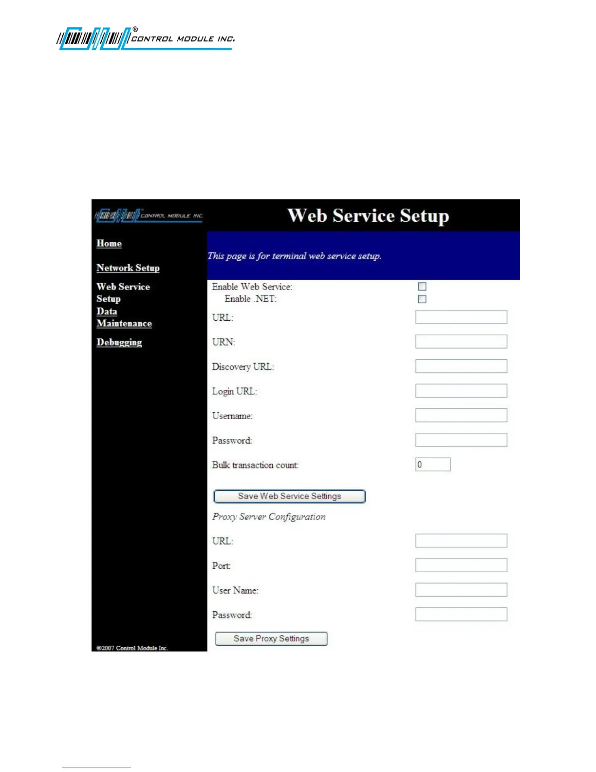 The Web Service Setup screen provides system administrators with the ability to reconfigure the