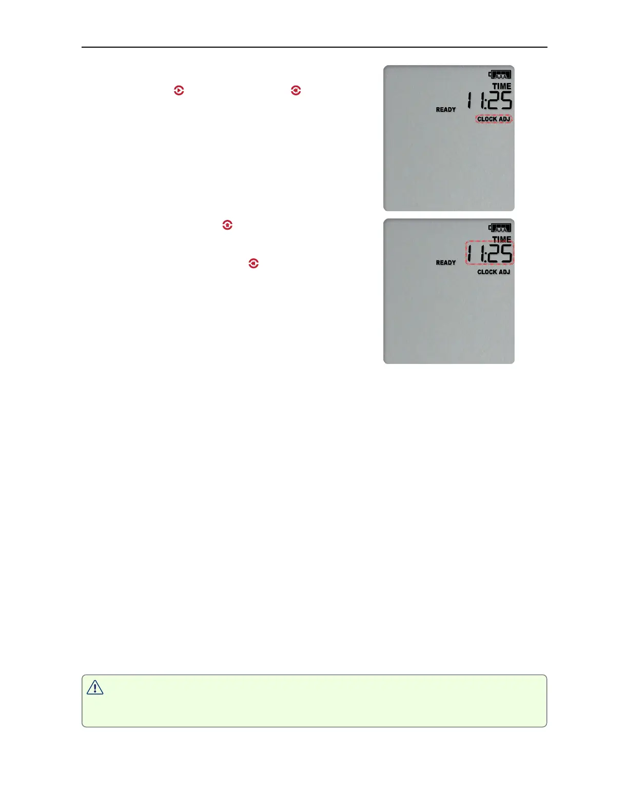 two seconds after the CLOCKADJ symbol remains