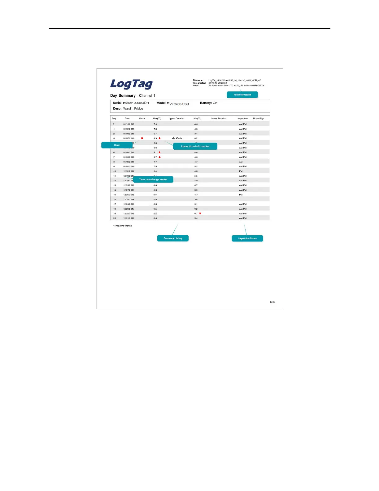 For each channel, a separate day summary page is included in the PDF.