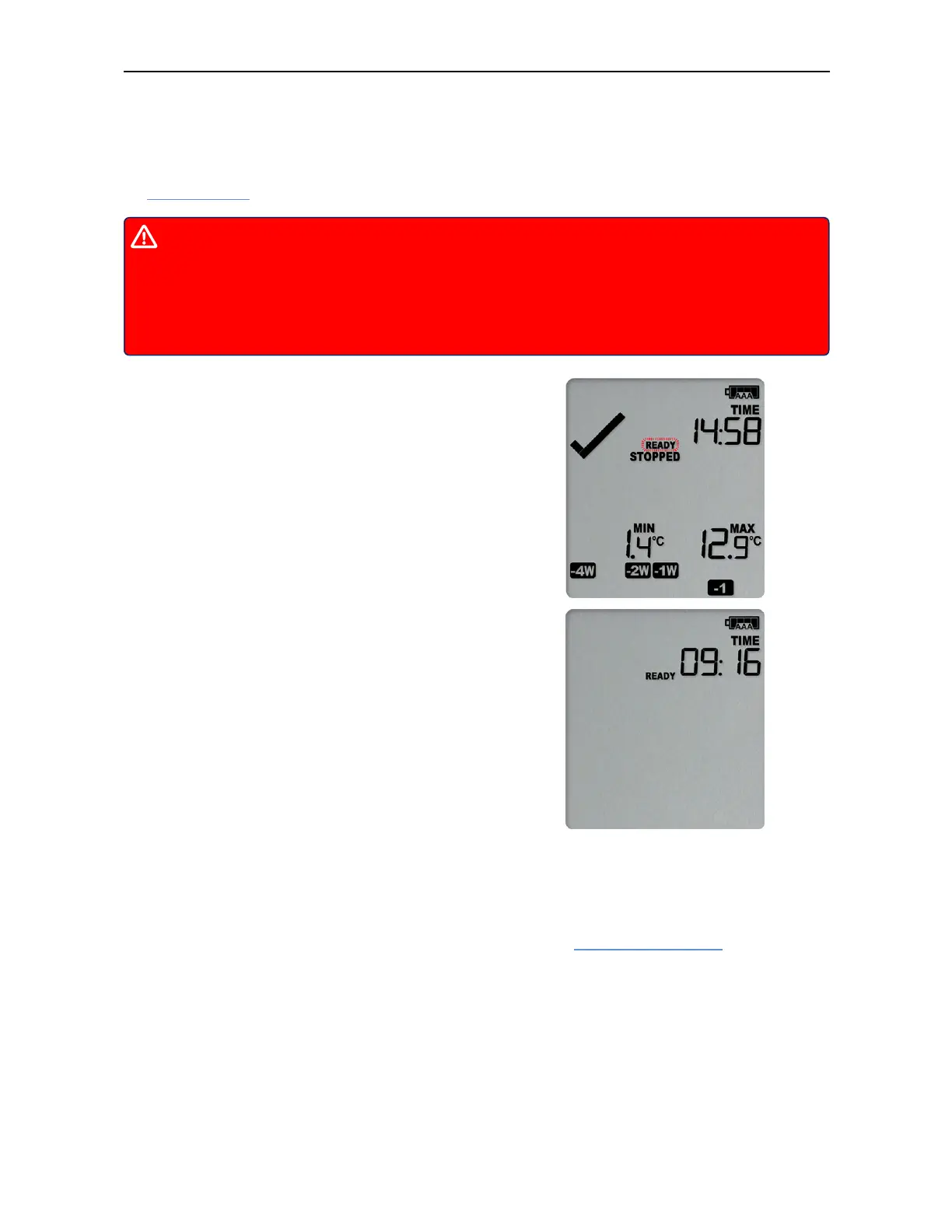 disappears, the display shows STOPPED again, and the logger remains stopped. This