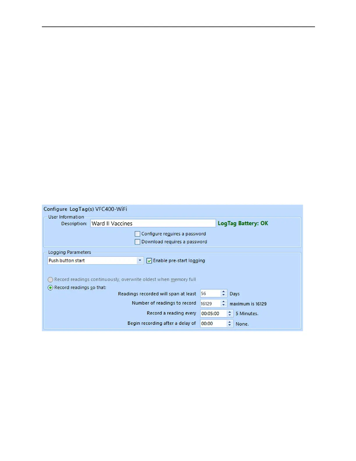 Before a VFC400-WiFi logger can be used, it must be configured with the parameters required for