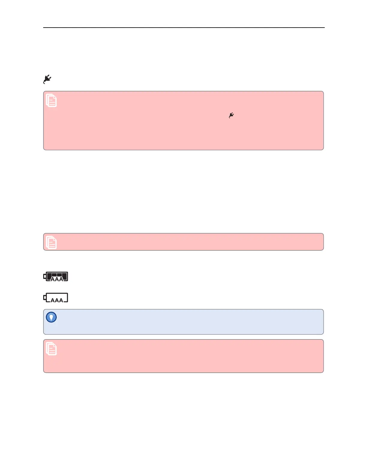 supply (5W). When supplied externally, the power symbol shows on the display: