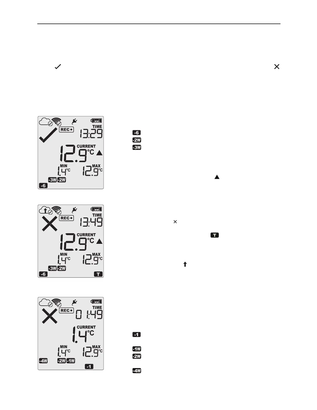 During normal operation the display shows the most recently recorded temperature. This temperature is