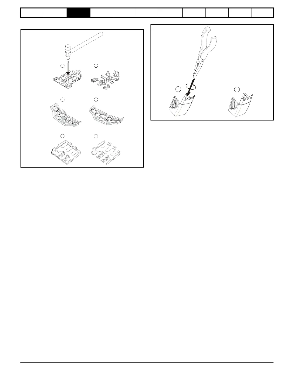 hammer as shown (1). Continue until all required break-outs are