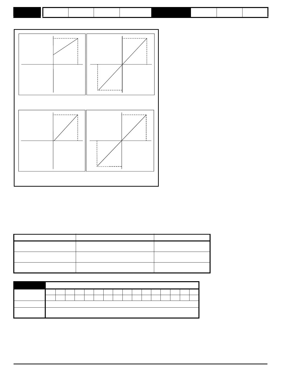 The following diagrams show the scaling applied when analog inputs are used to define the reference and are routed via Pr 1.36 or Pr 1.37.