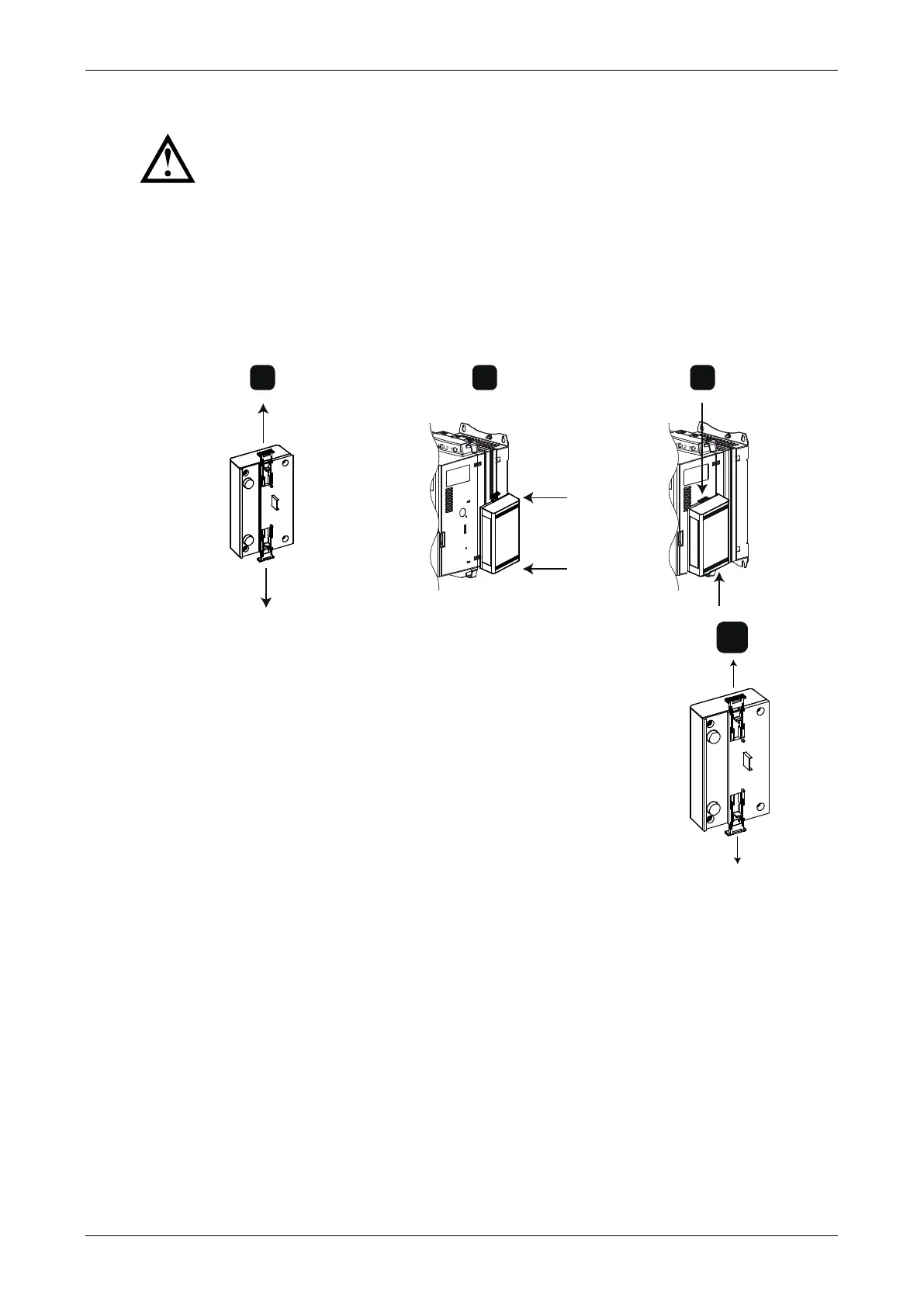 4. Push in the top and bottom retaining clips to secure the module to the starter. [C]