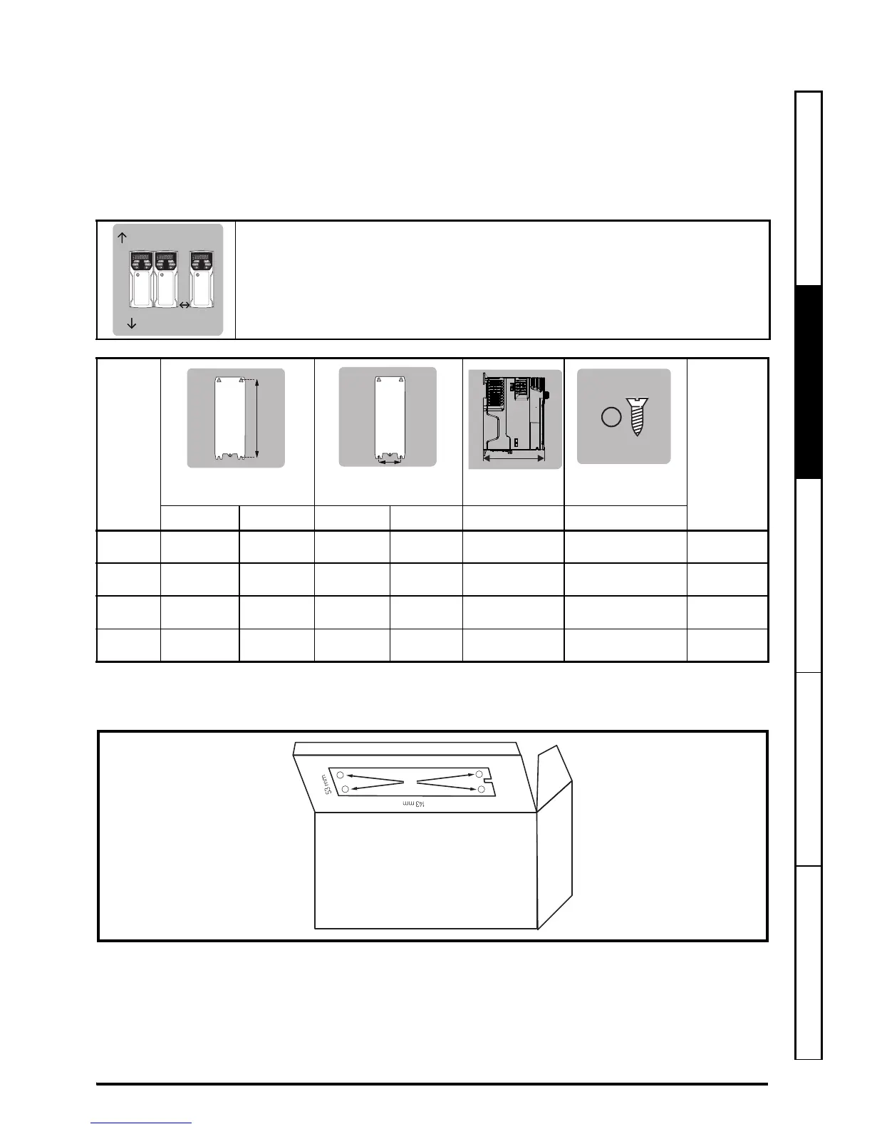 Les variateurs peuvent être montés sans espacement entre eux. Prévoir un espacement minimum de 100 mm