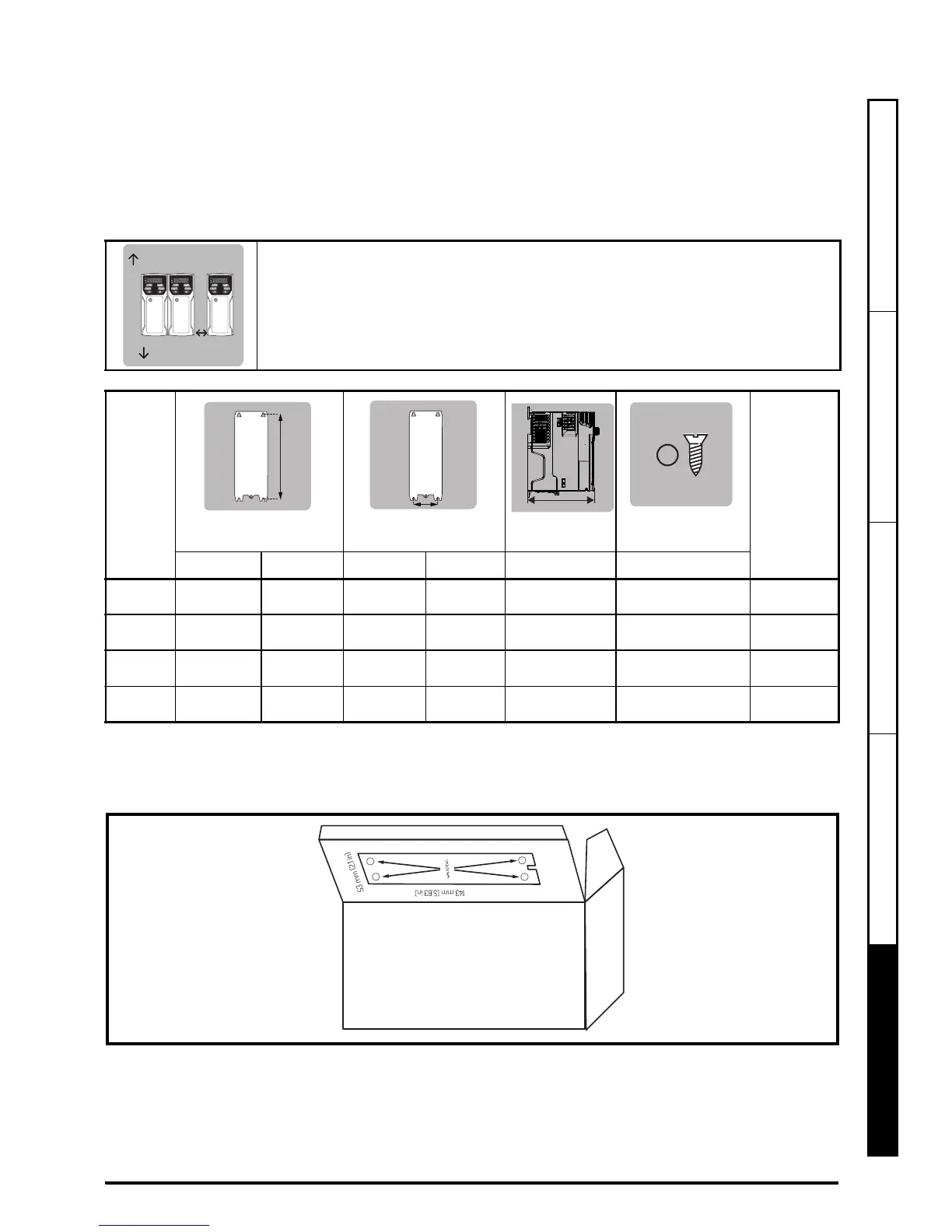 Se incluye una plantilla de perforación para el montaje en pared en el embalaje del accionamiento (se ilustra a