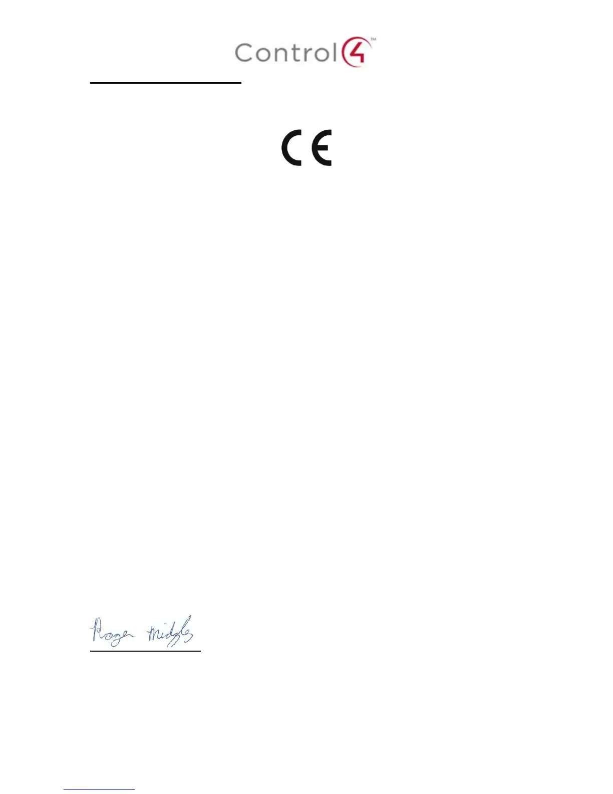 EU Representative Name: CONTROL4 EMEA LIMITED