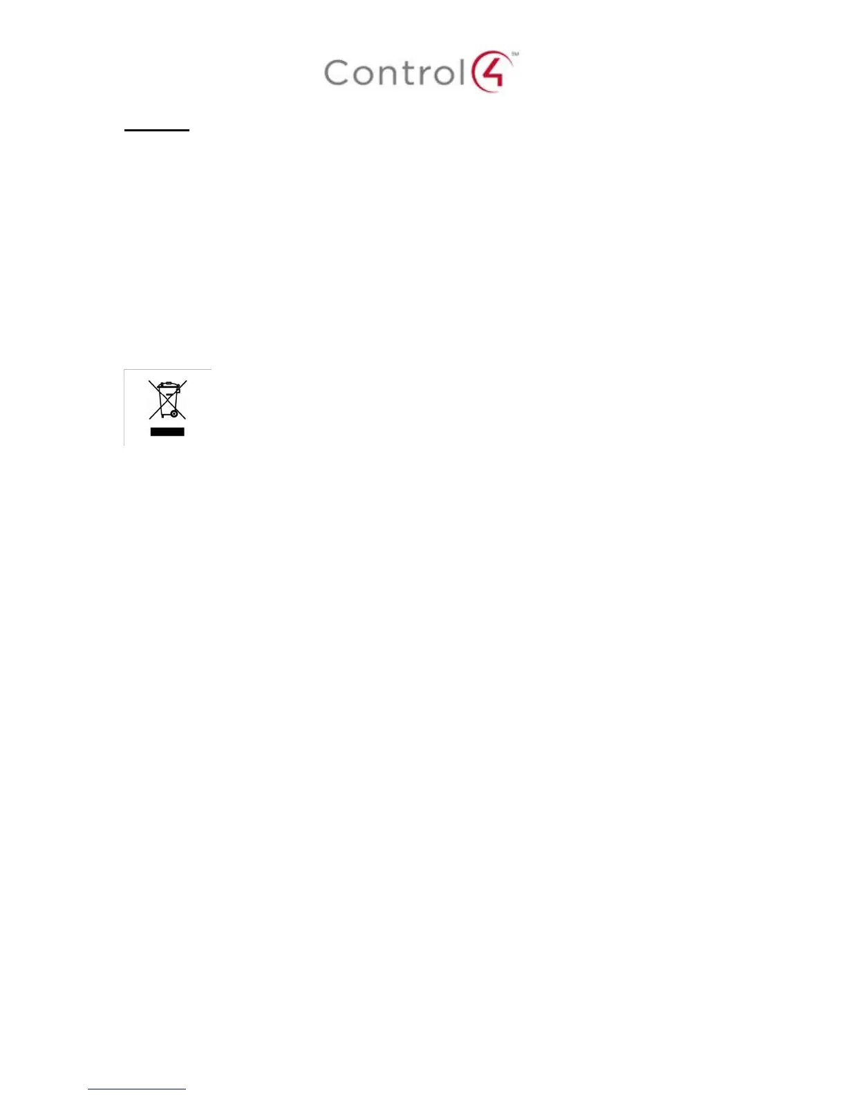 recycling of Control4 products, please contact your local Control4 representative or dealer.
