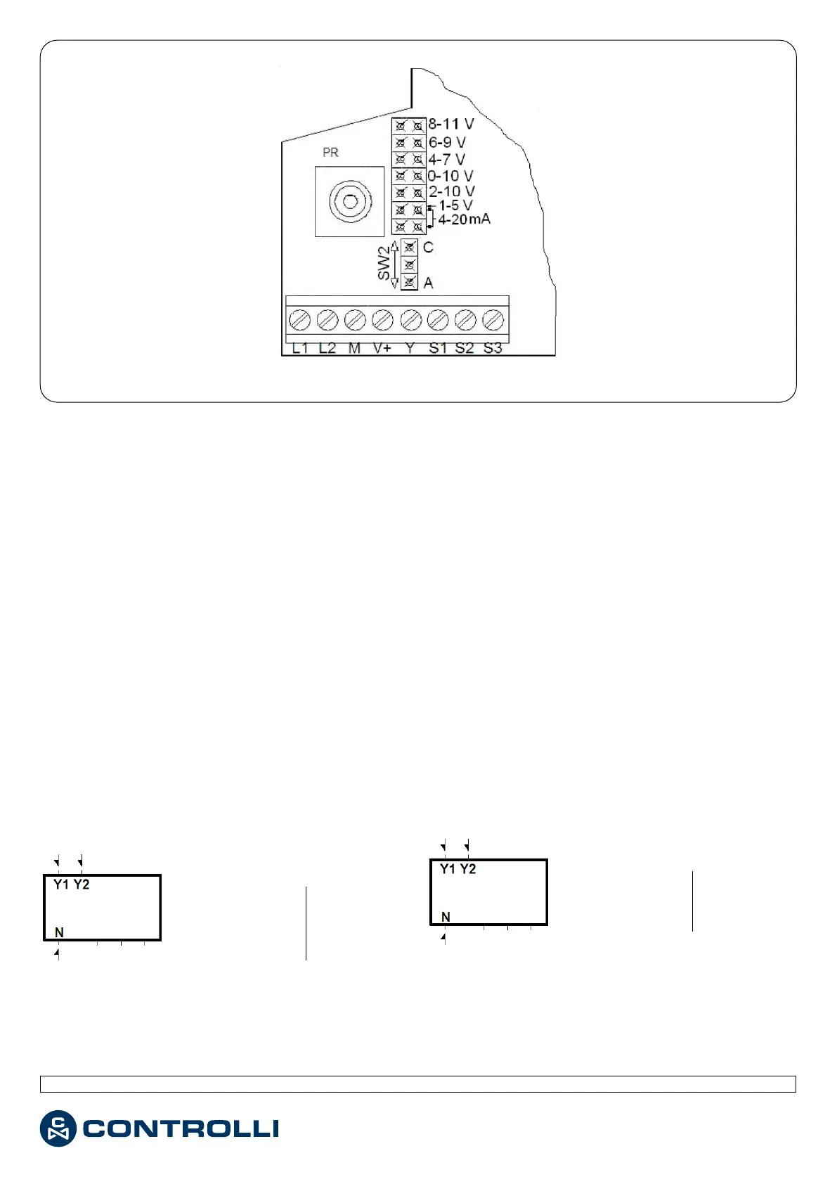 • Alimentare il servocomando tra L1 e L2 con morsetto Y