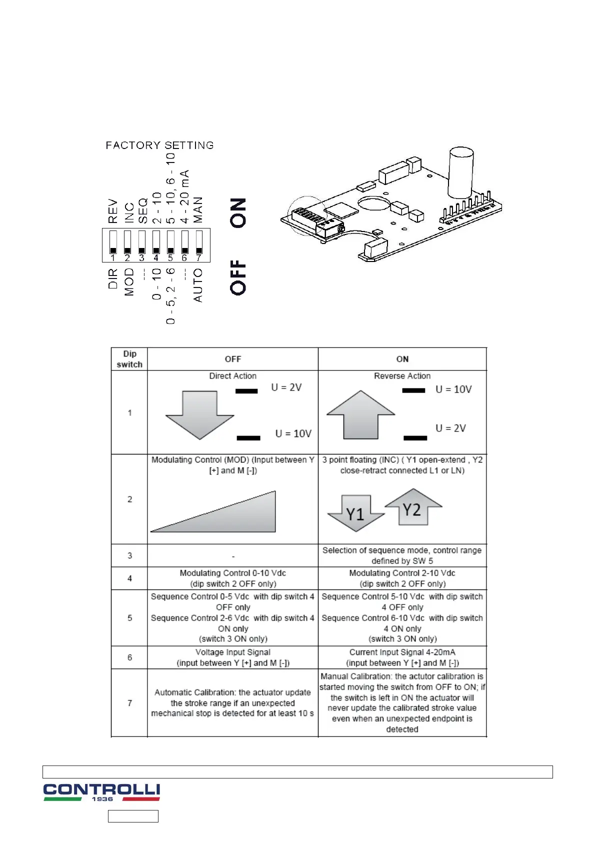 Controlli MVE506 - DIP Switch Settings; Actuator Configuration via Dip Switches