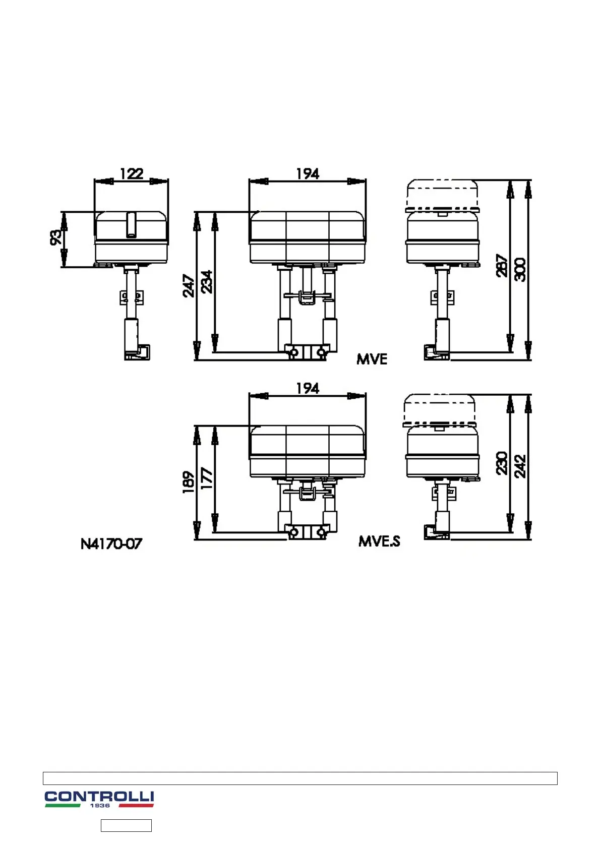 Controlli MVE506 - Dimensional Drawings; Actuator Dimensions