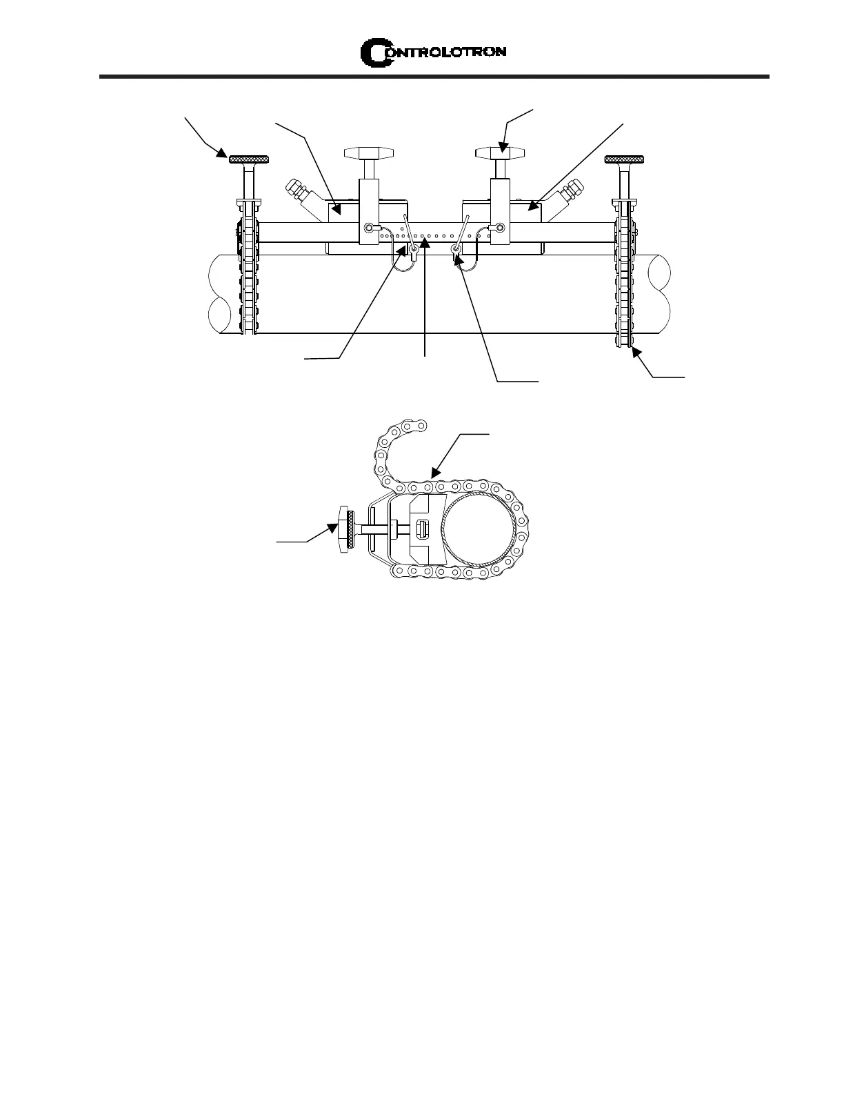 or seams. Holding the assembly in place, loop one of the roller chains under the pipe, pull it