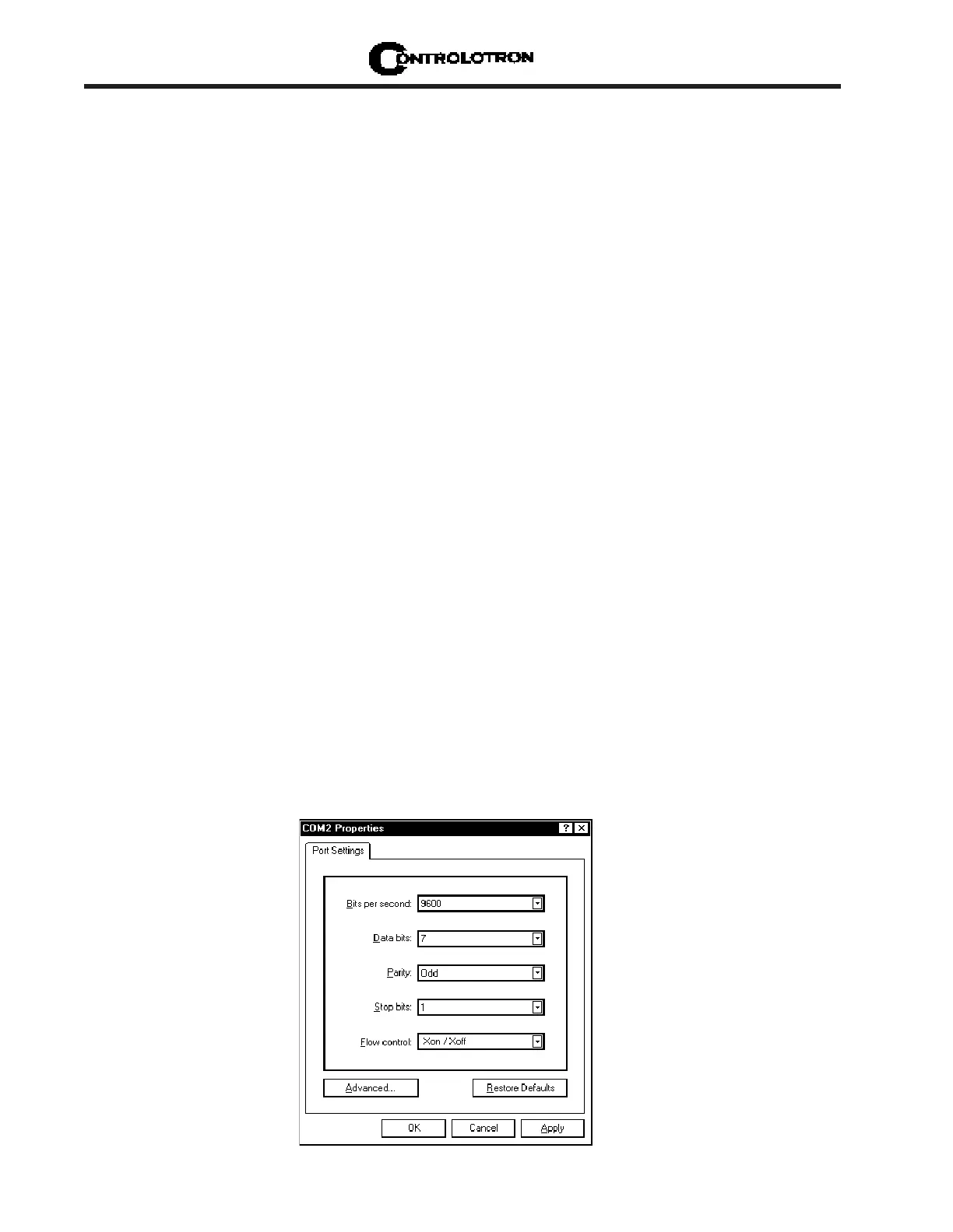 [OK] to select the [Com 1 (or 2) Properties] Dialog box. Set up your RS-232 parameters as