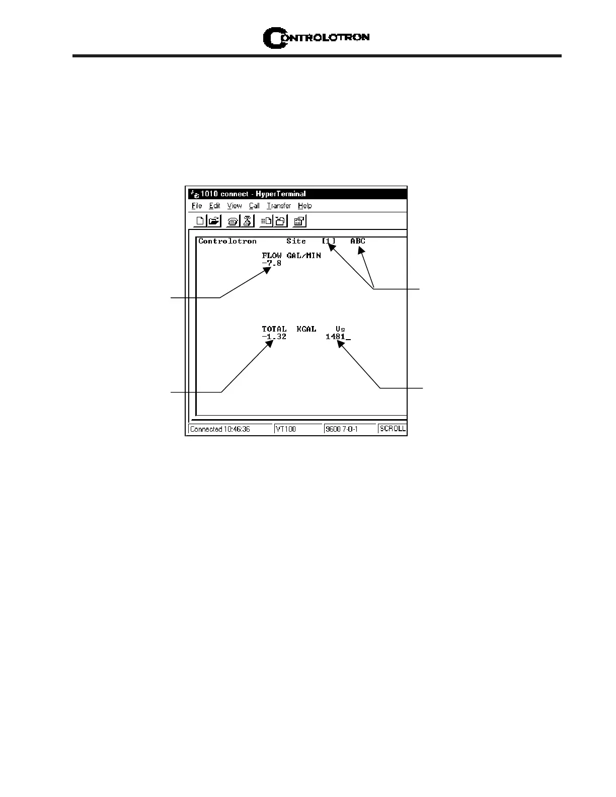 interface does not support graphics. Therefore, when you use HyperTerminal™ to view the data