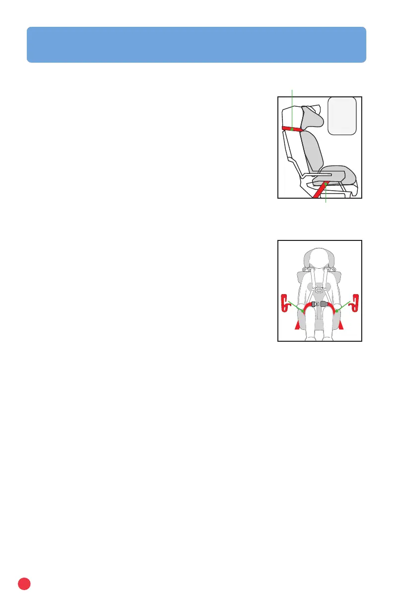 lower belt guides (Fig. B) and over the child. Pull on the