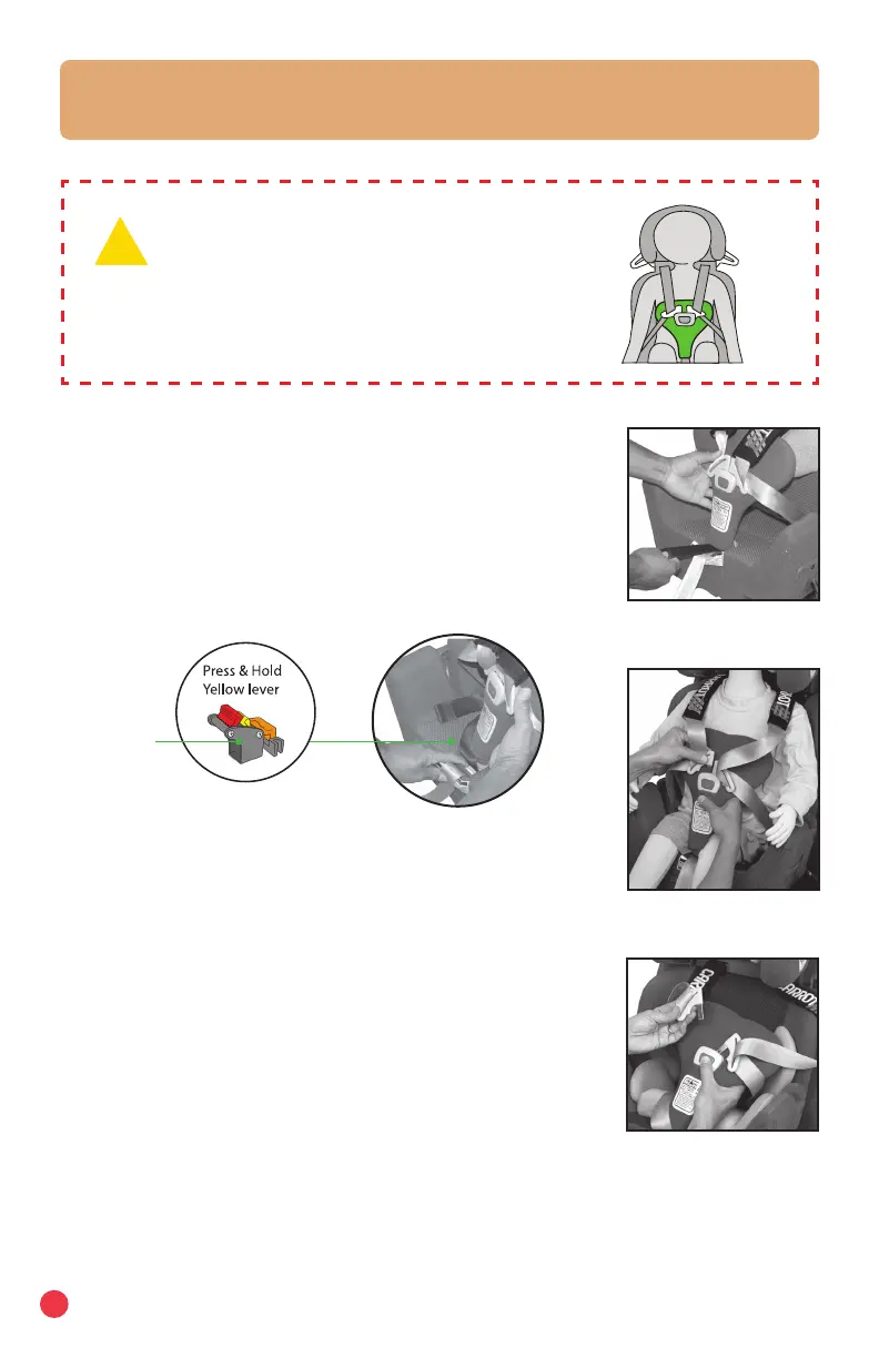 2. Release: Hold the harness buckle with one hand.
