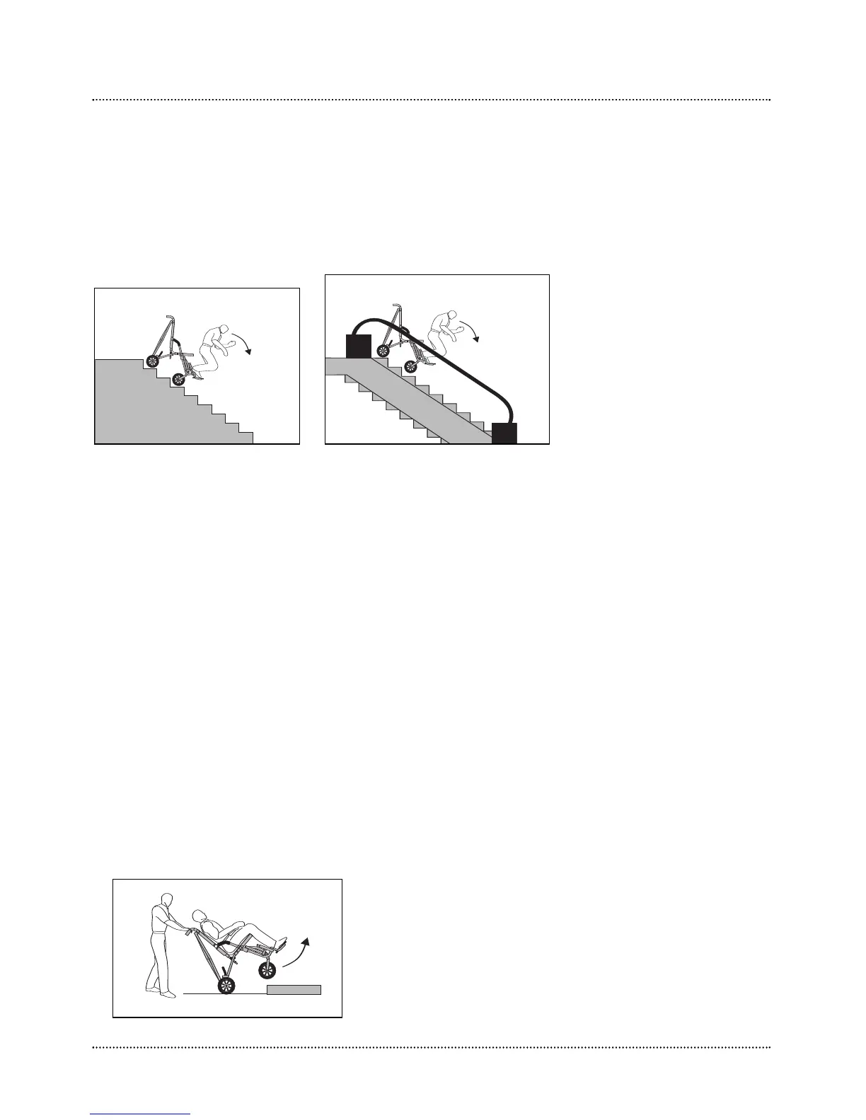 • Do not attempt to take occupied chair up or down stairs, escalators,