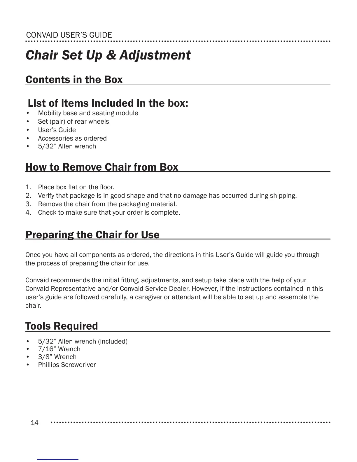 Convaid recommends the initial tting, adjustments, and setup take place with the help of your