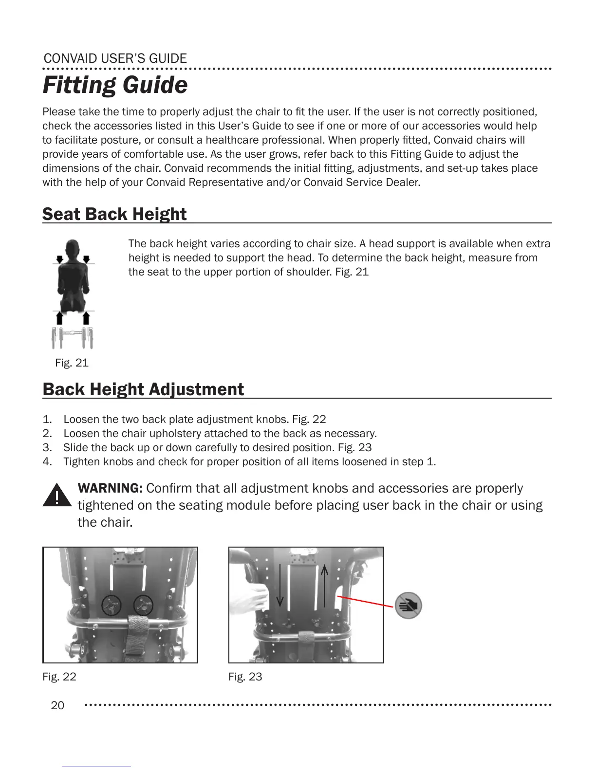 3. Slide the back up or down carefully to desired position. Fig. 23