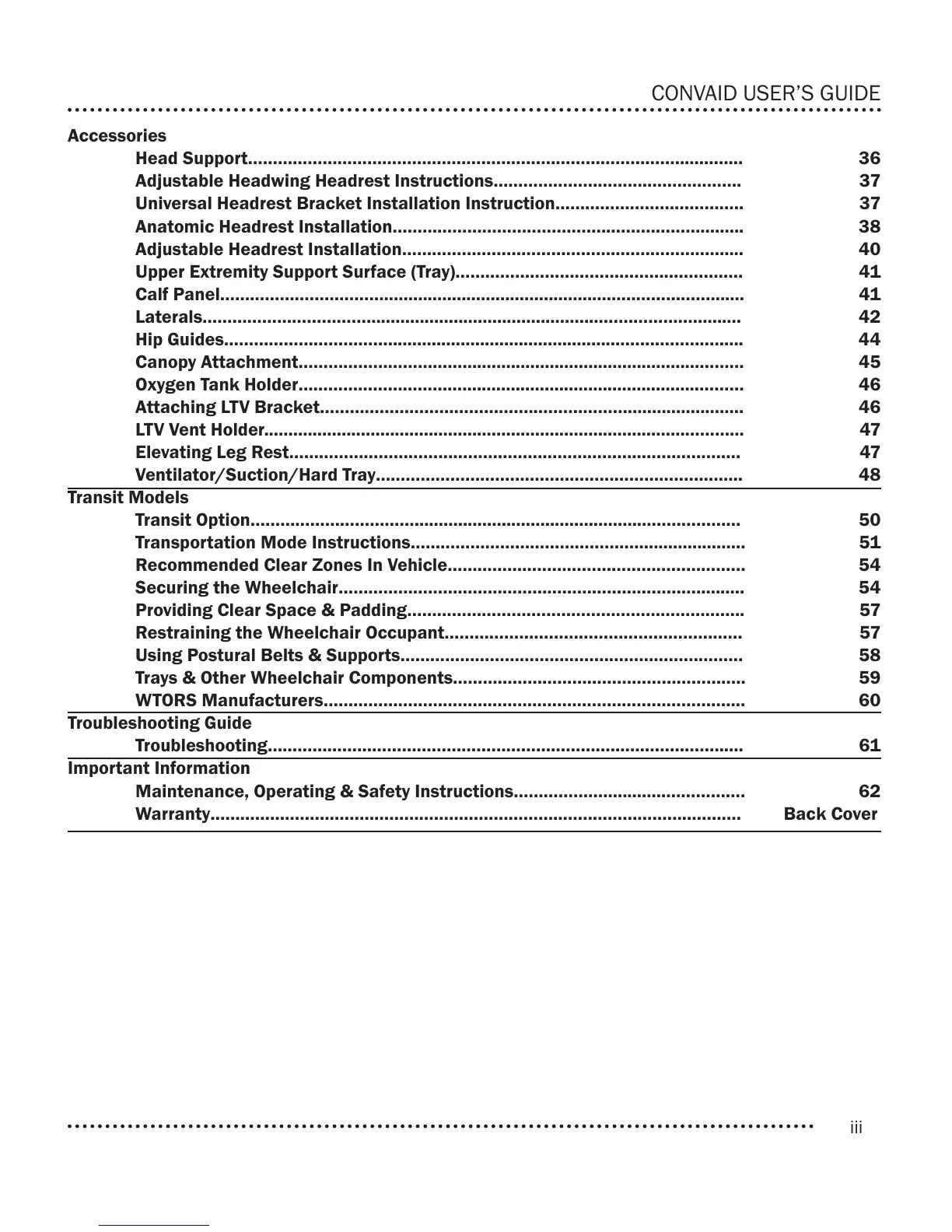 Trays & Other Wheelchair Components………………………………………………….. 59