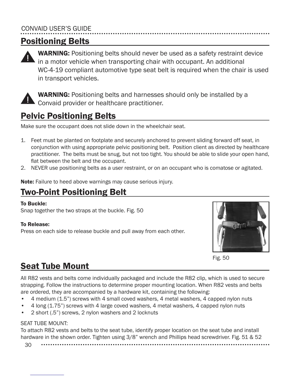 2. NEVER use positioning belts as a user restraint, or on an occupant who is comatose or agitated.