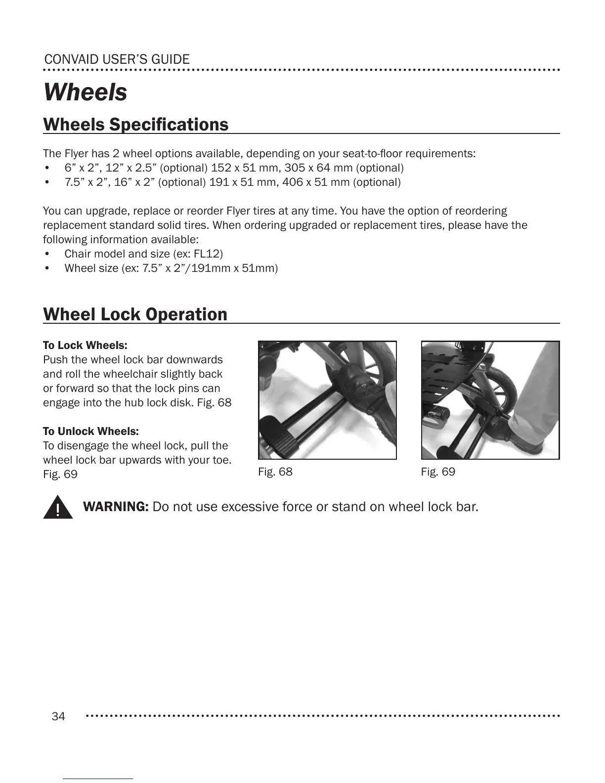 WARNING: Do not use excessive force or stand on wheel lock bar.
