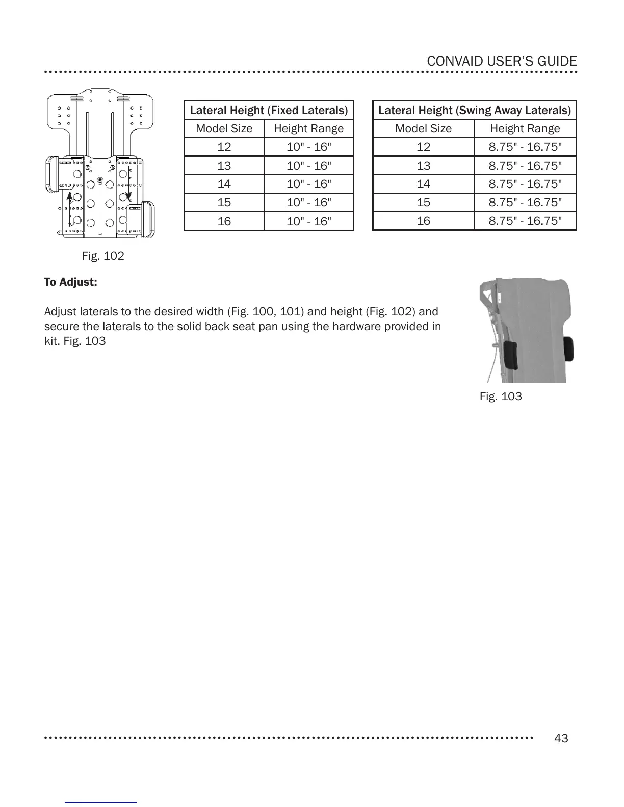 Adjust laterals to the desired width (Fig. 100, 101) and height (Fig. 102) and