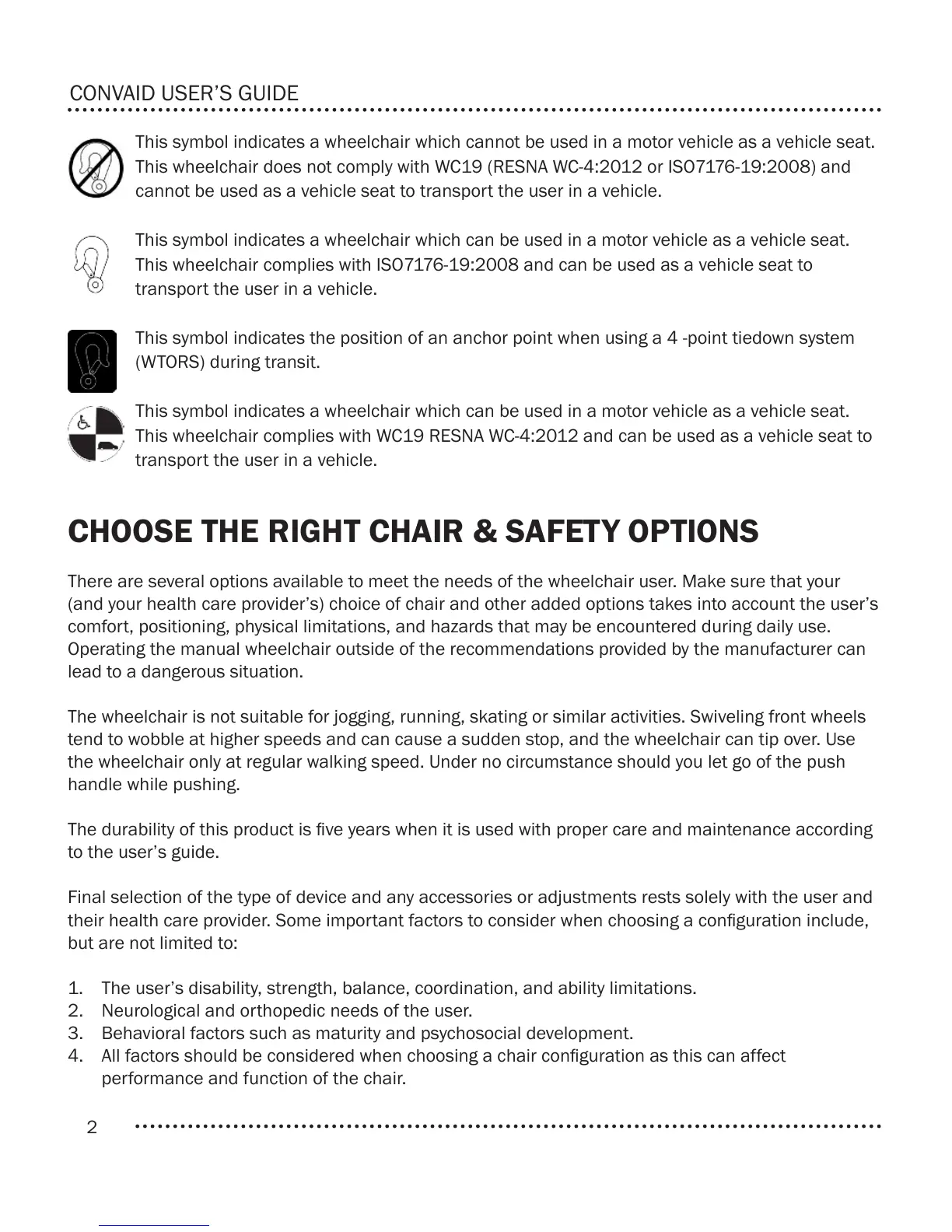 (and your health care provider’s) choice of chair and other added options takes into account the user’s
