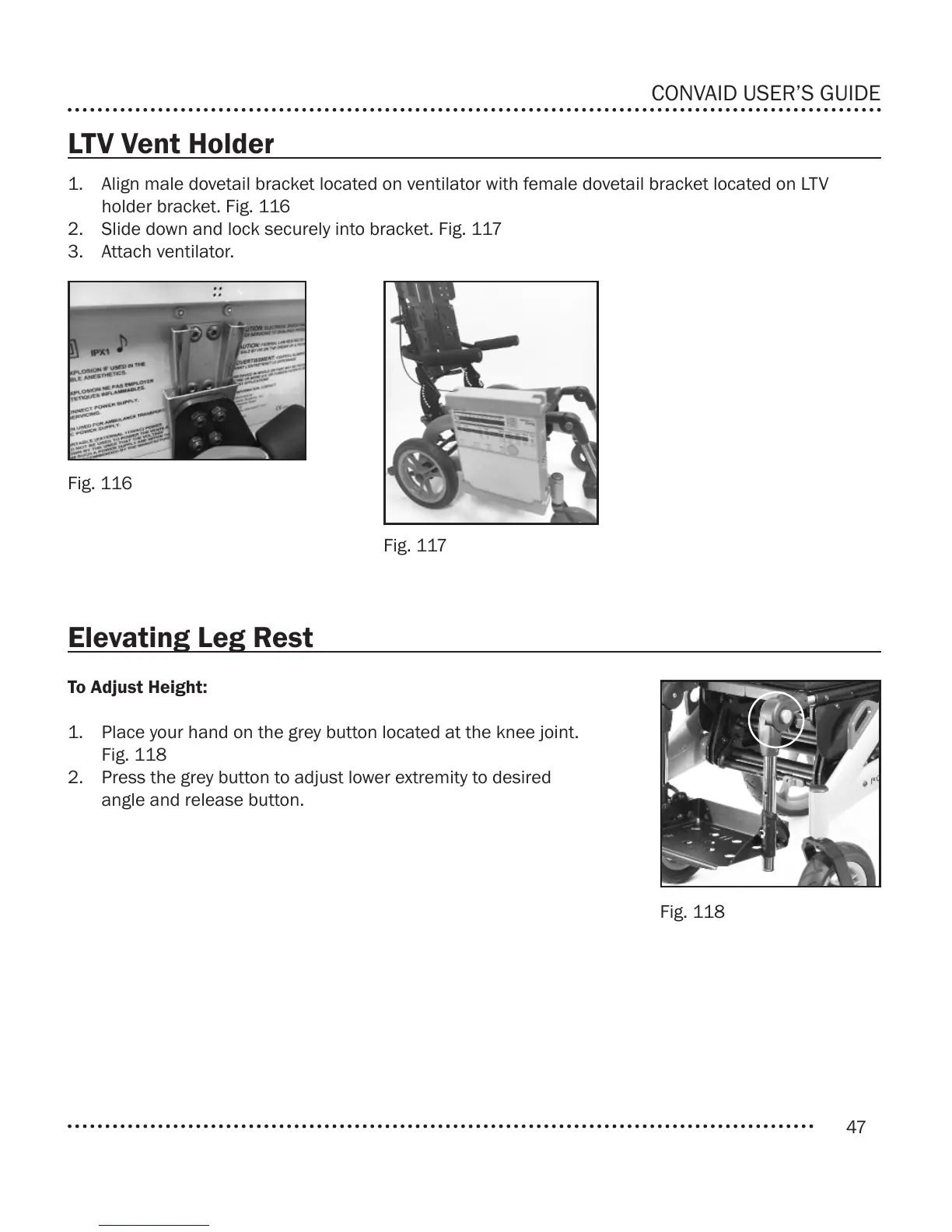 Convaid Flyer - LTV Vent Holder; Elevating Leg Rest