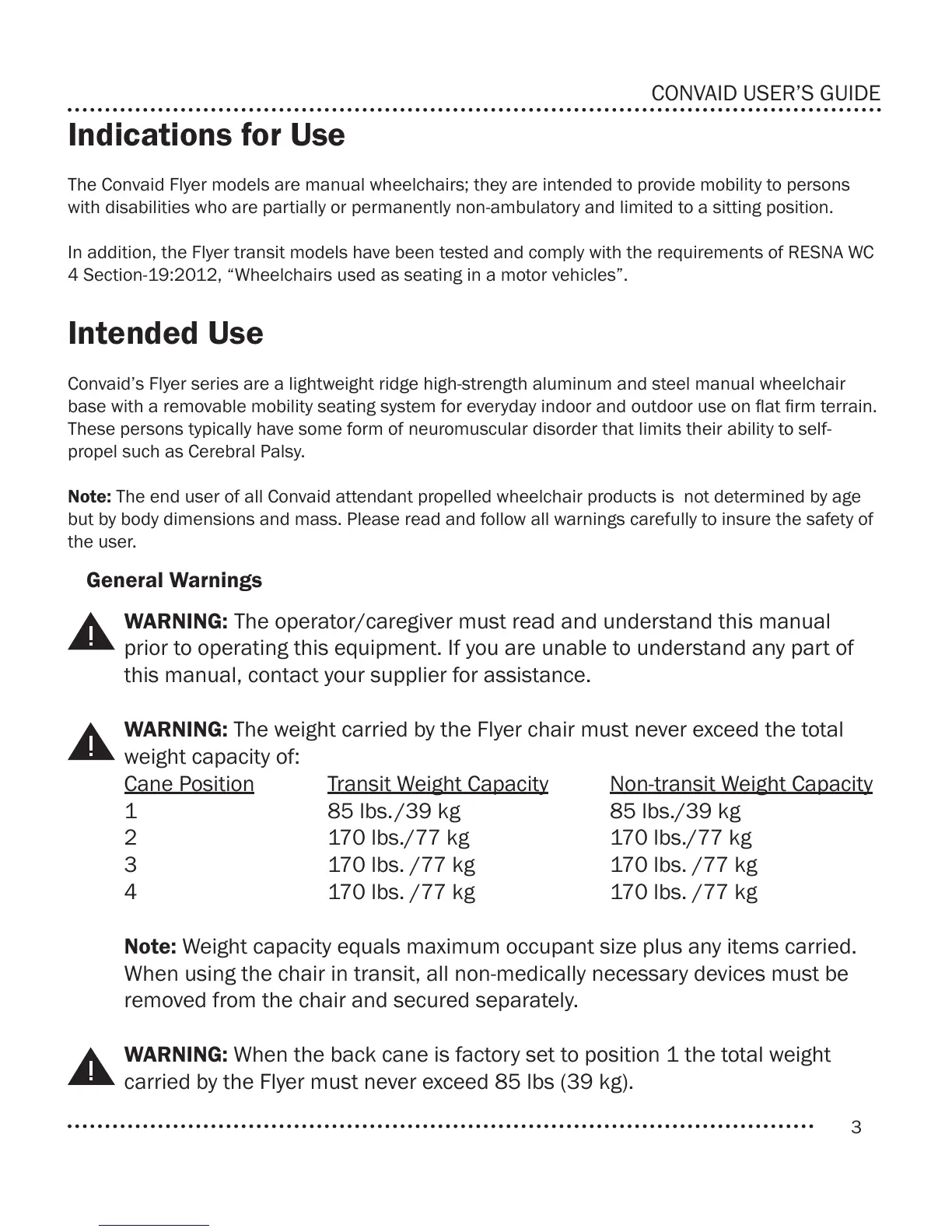 The Convaid Flyer models are manual wheelchairs; they are intended to provide mobility to persons