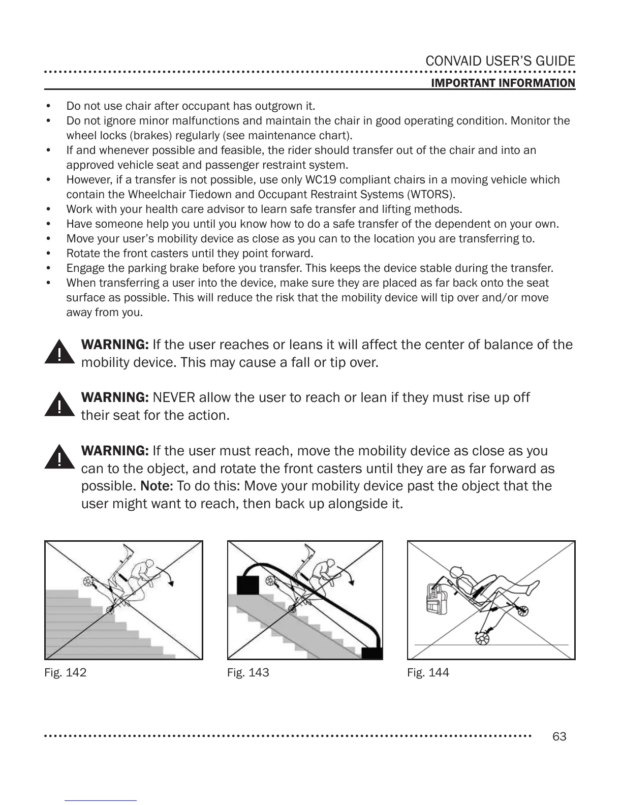 WARNING: NEVER allow the user to reach or lean if they must rise up off