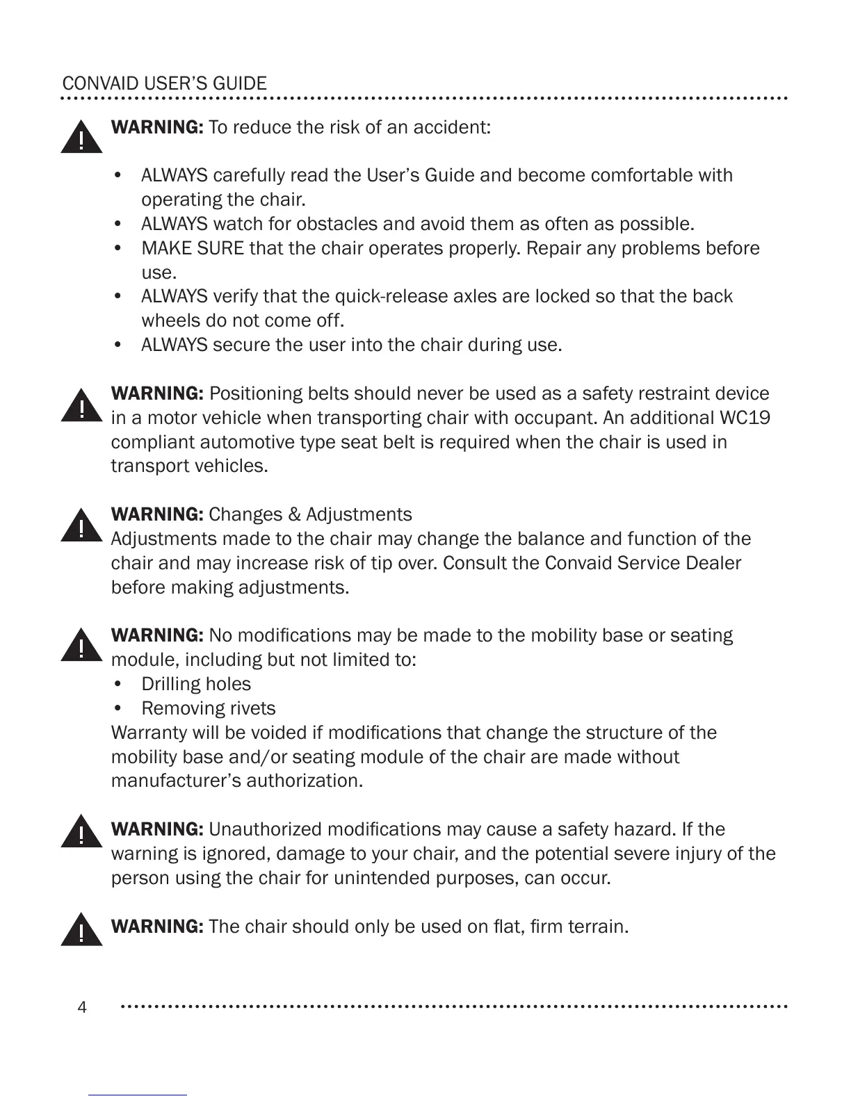 warning is ignored, damage to your chair, and the potential severe injury of the