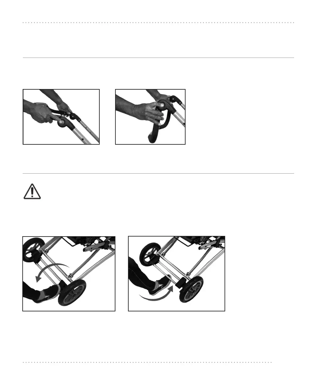 Never use excessive force. This could damage the quick release plunger pins and the wheels