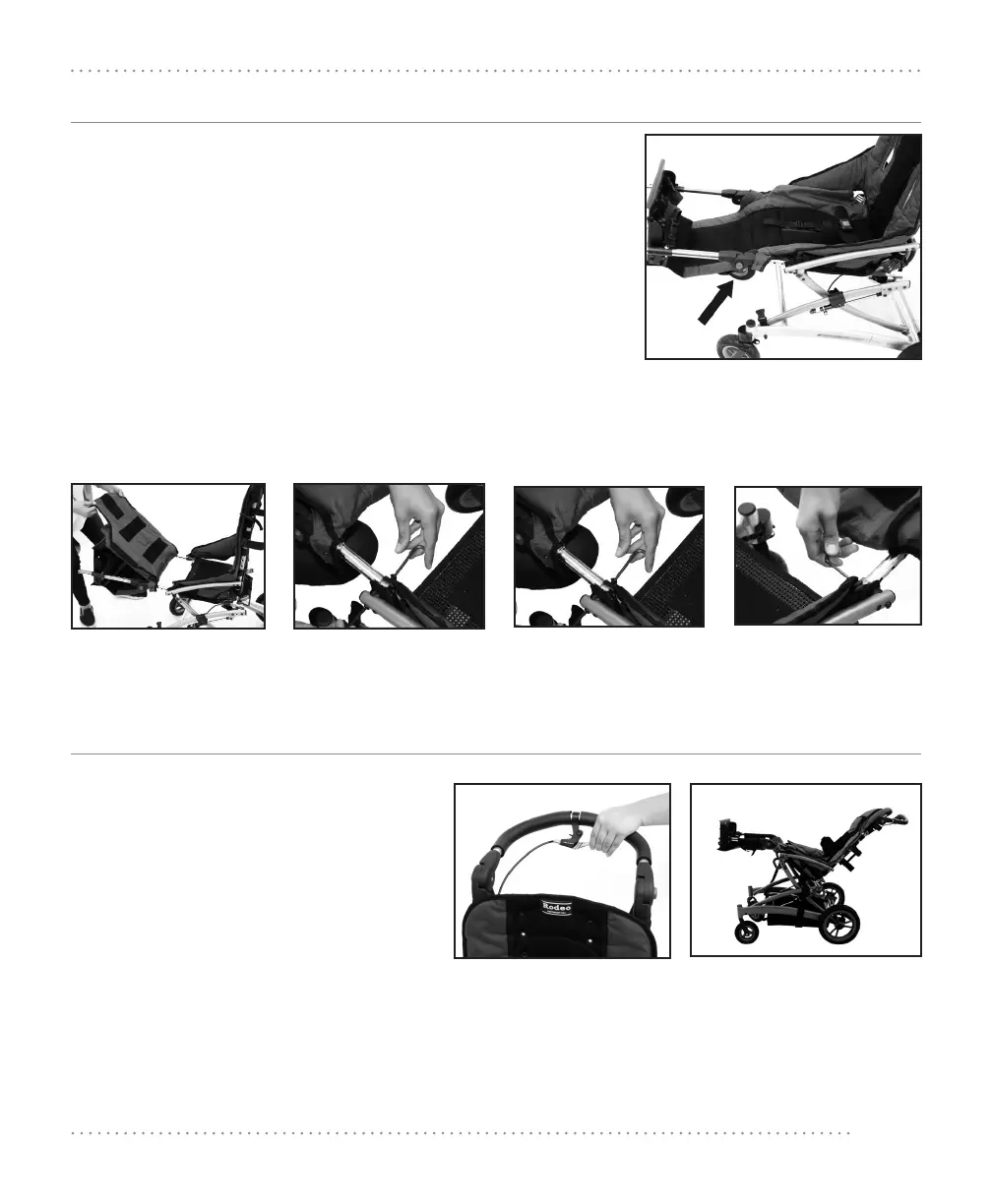 1. Push the gray buttons on the leg rest extensions; swing