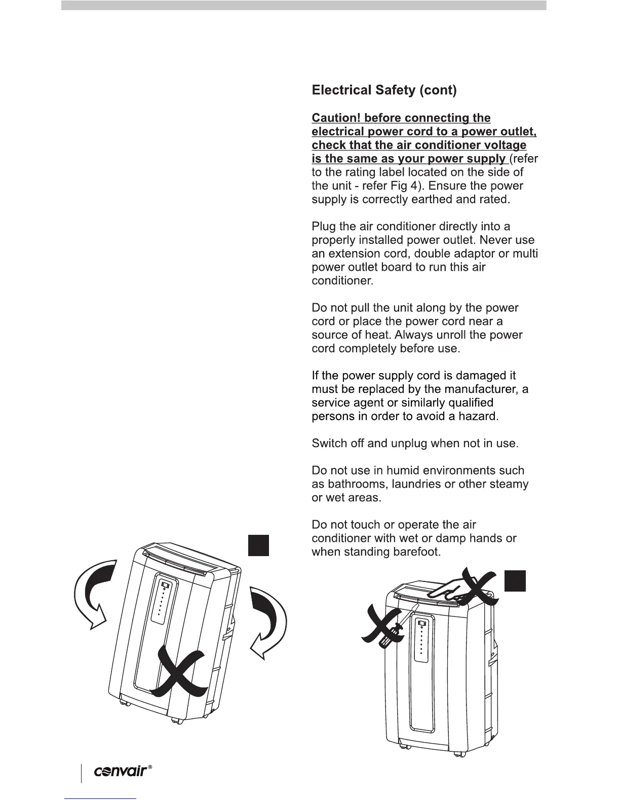 Do not place objects on the air conditioner, or