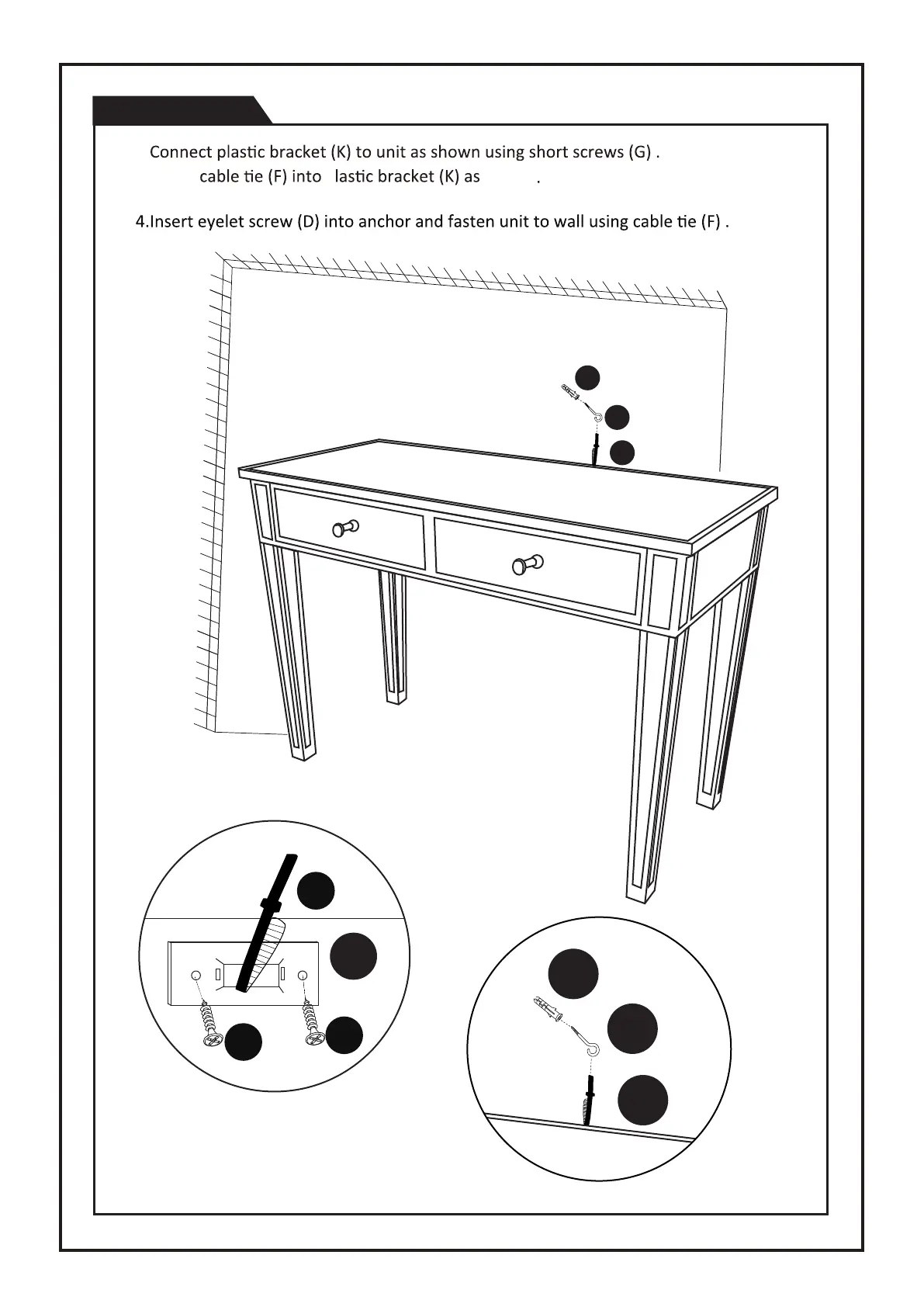 convenience concepts 413372 - Step 3: Secure Unit to Wall; Attach Plastic Bracket and Cable Tie; Anchor Unit to Wall