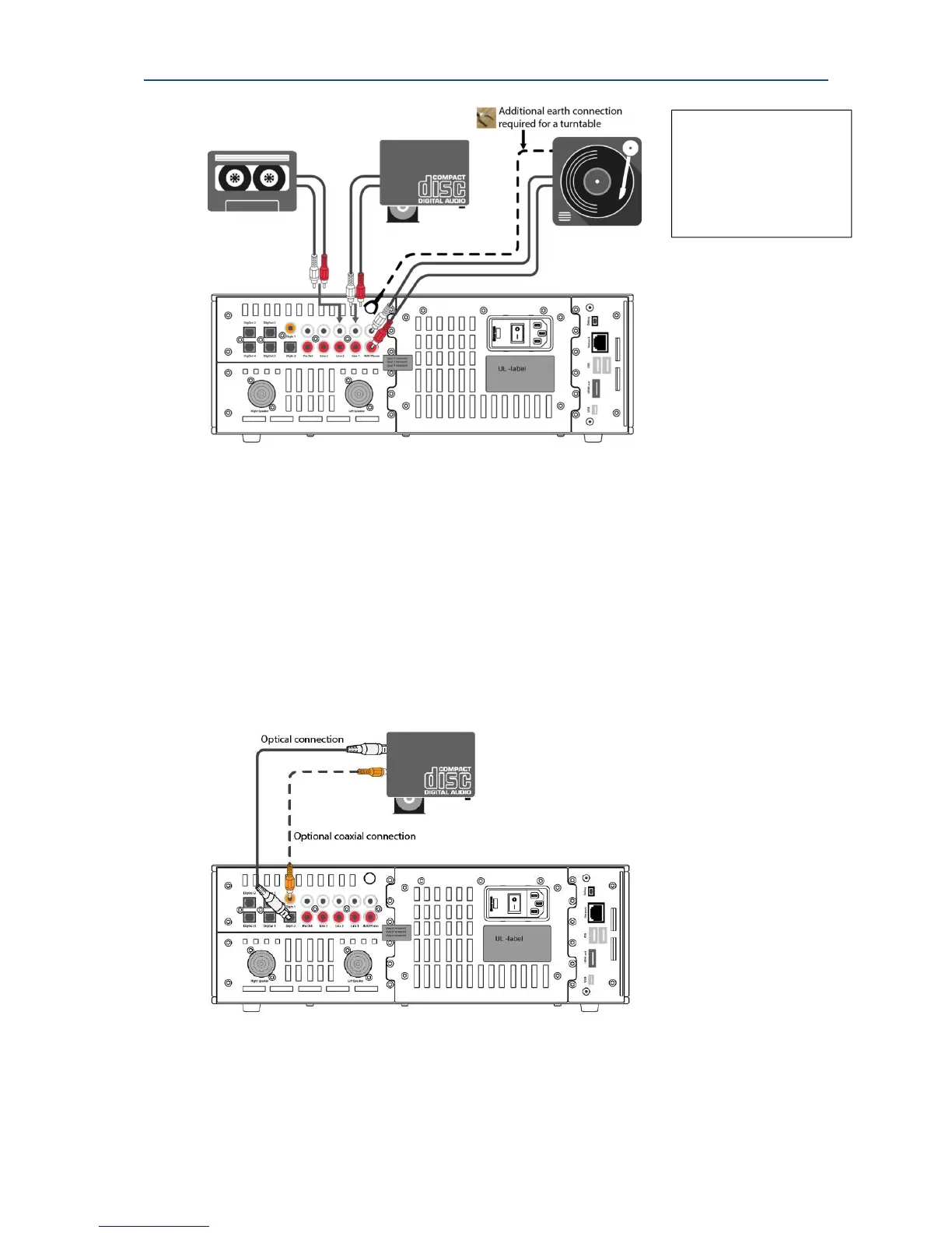 input. If connecting a turntable to this input, you may also be required to add an earth