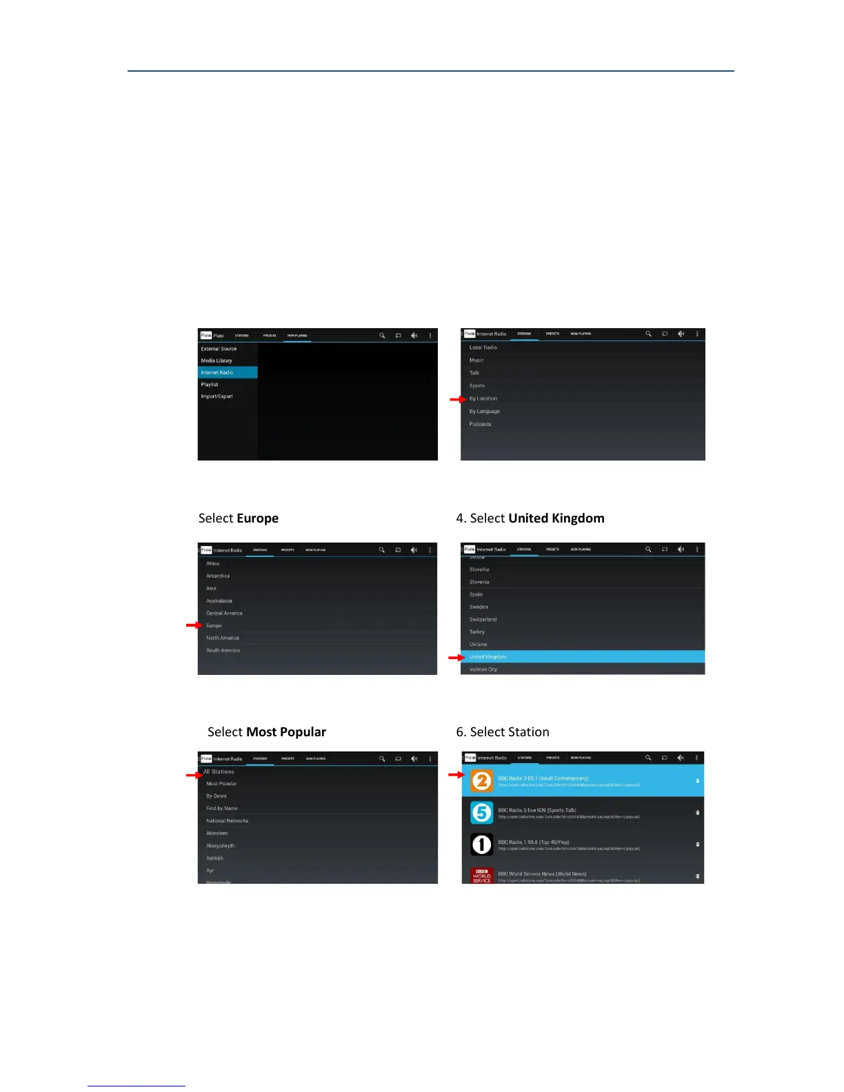 From the STATION tab it is possible to browse categories to your chosen radio station.
