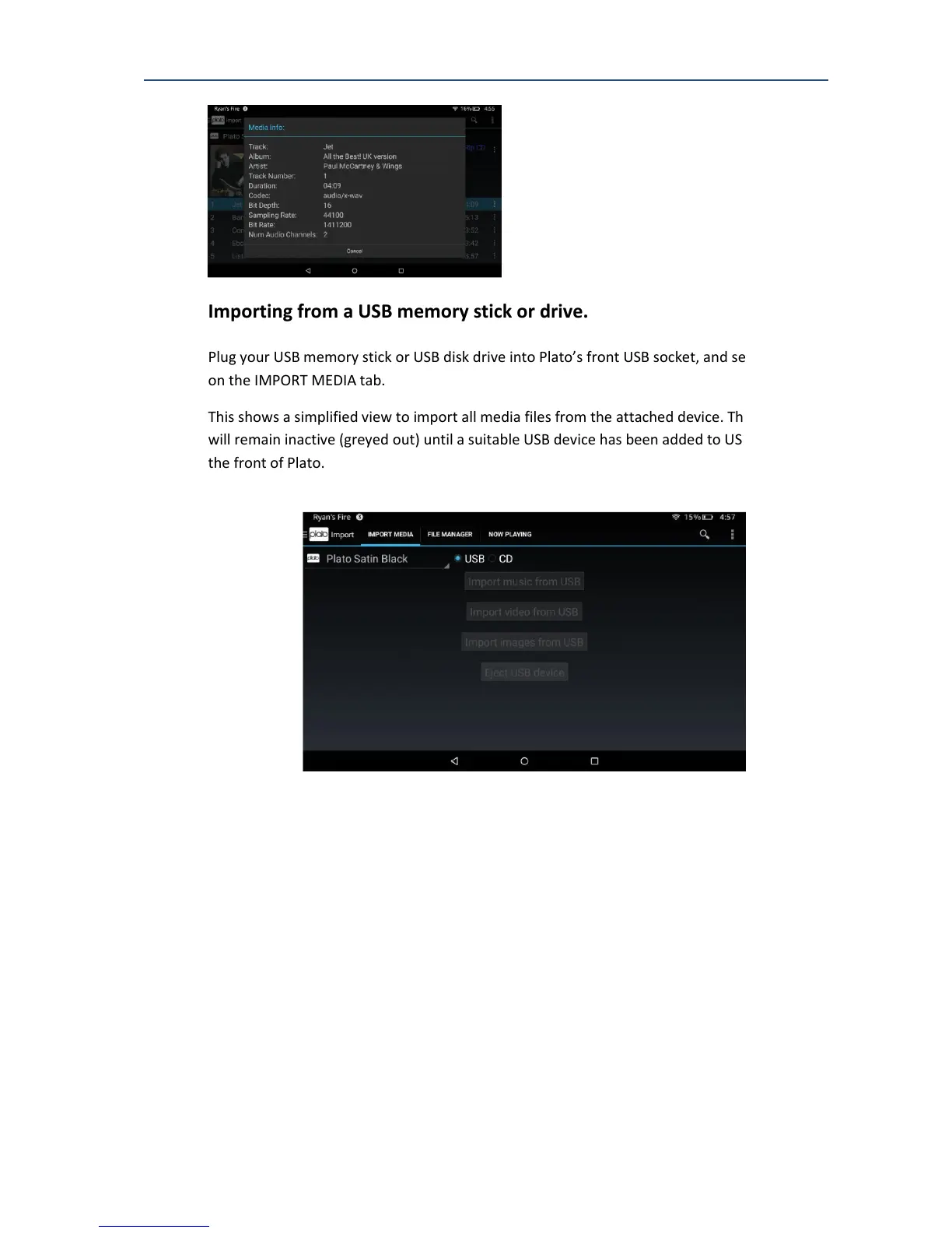 Plug your USB memory stick or USB disk drive into Plato’s front USB socket, and select USB