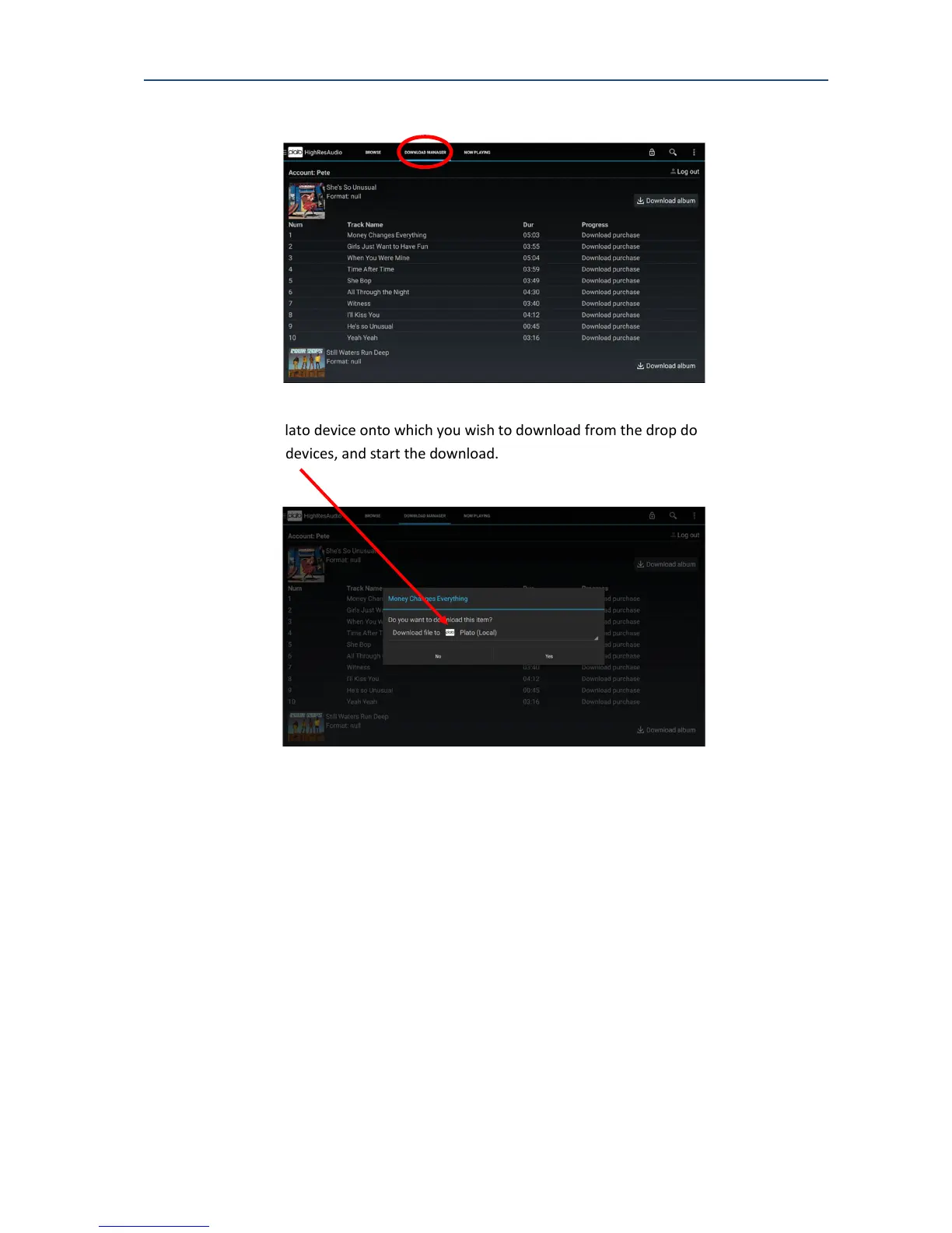Note that the download manager synchronises with HighResAudio to manage your