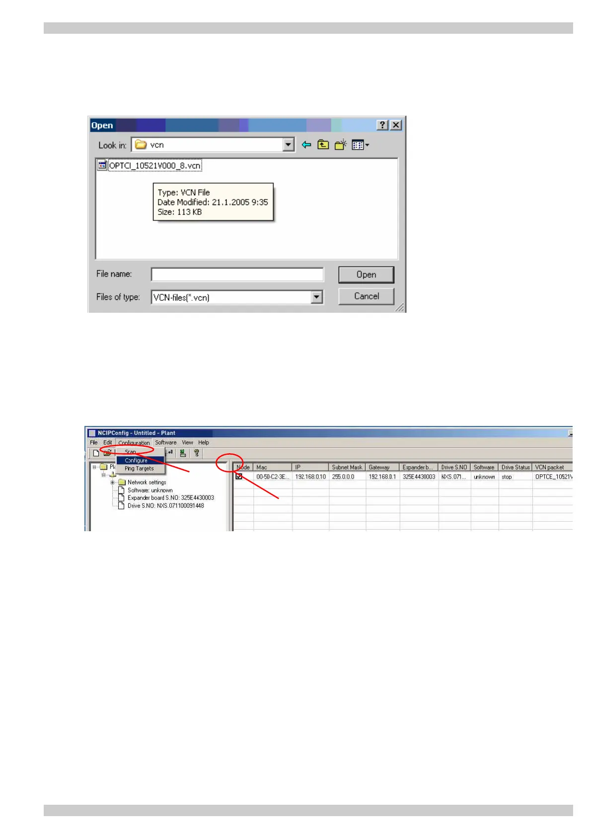 After clicking the 'VCN Packet' field, a file open window from where you can choose a new firmware packet is