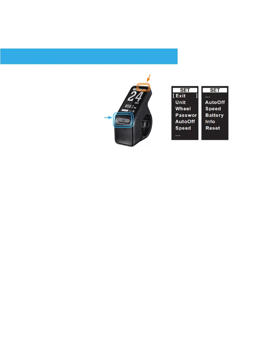 In the ‘Unit’ setting menu, use the M button to toggle between KM/H
