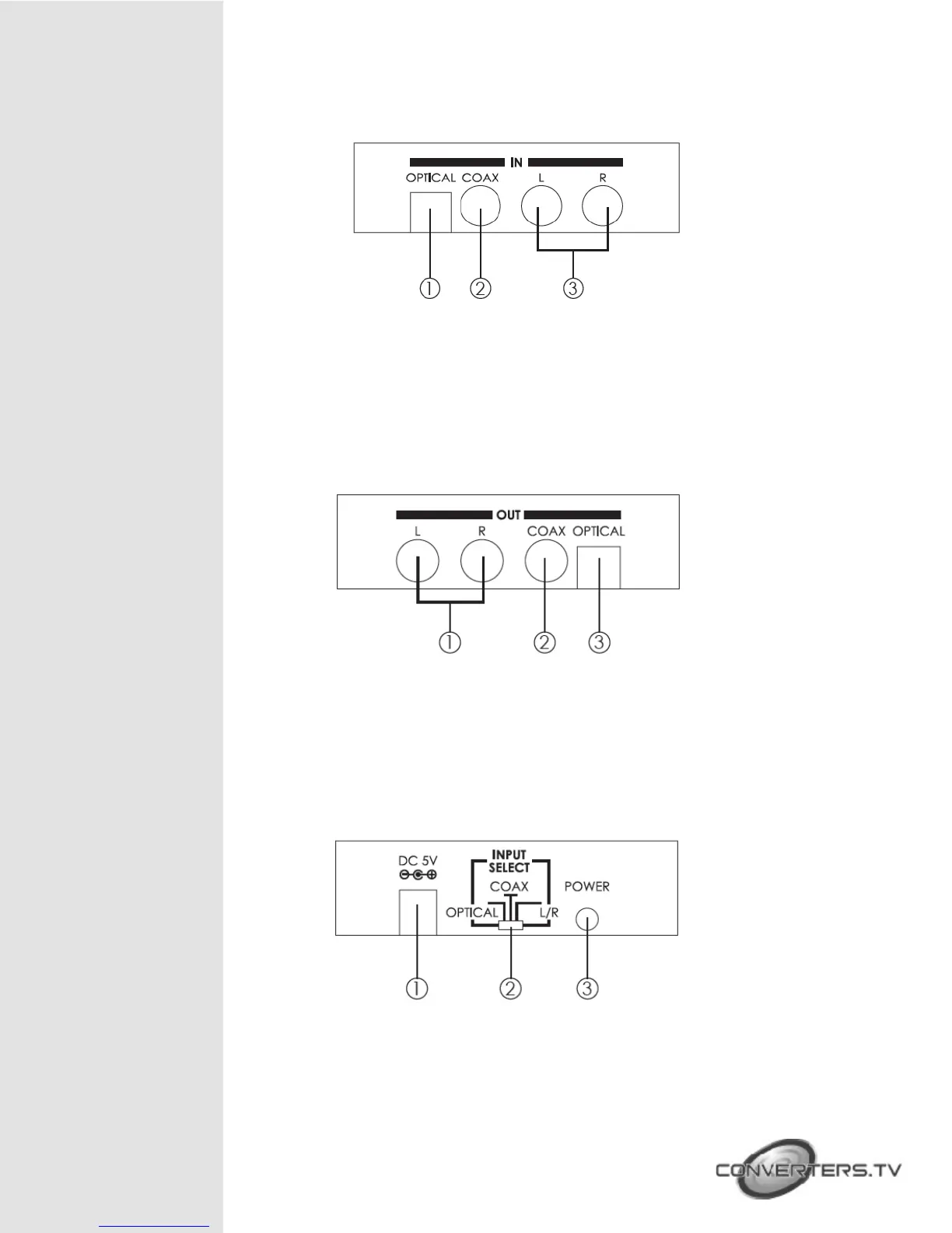 ② COAX: Connect to audio equipment’s coaxial input such like TV or