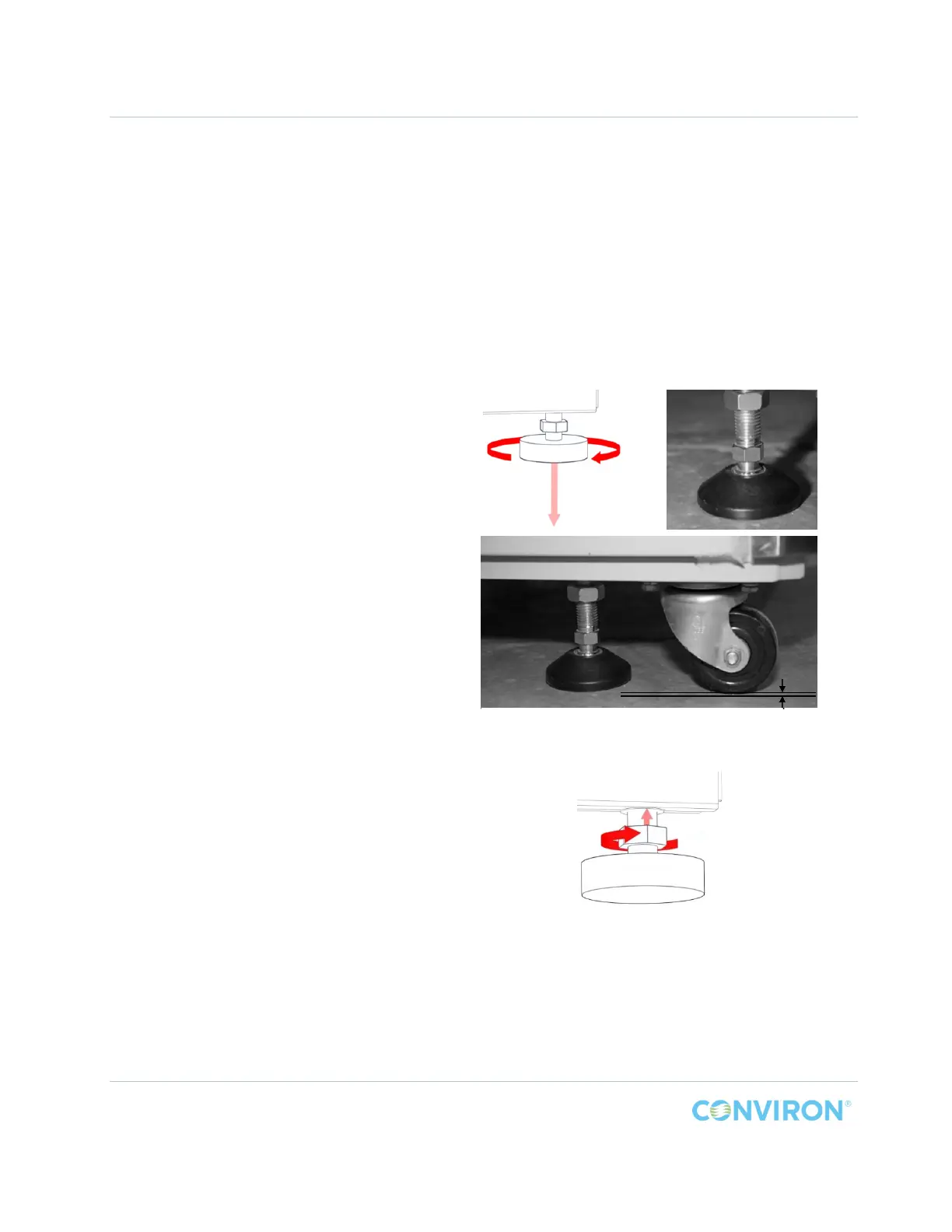 The levelers must be adjusted to take the weight of the unit off the casters. Once the chamber is